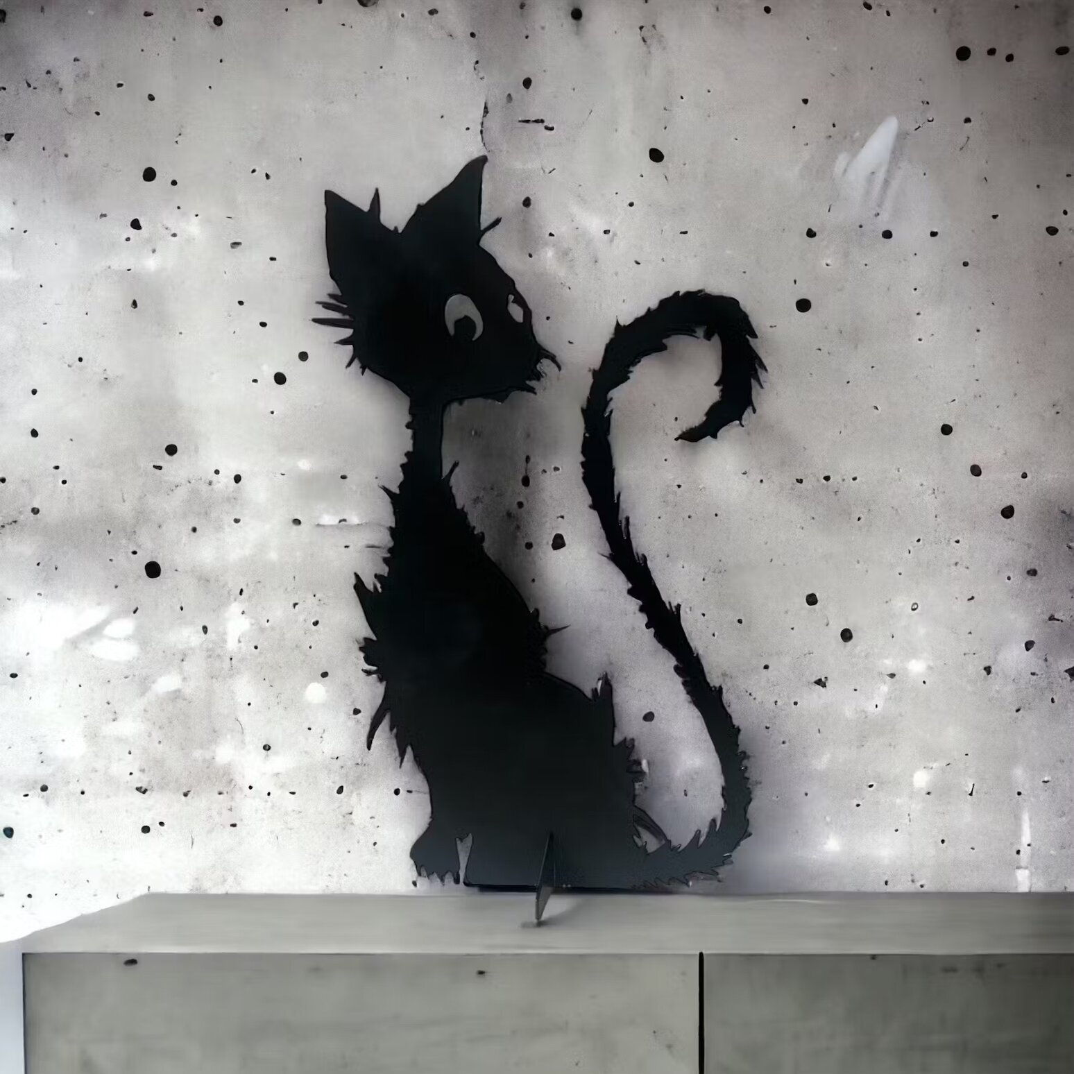 En alldeles egen huskatt i plåt som blir en fin inredningsdetalj både i fönster & på sidebord. Tillverkad i småländska Nässjö.