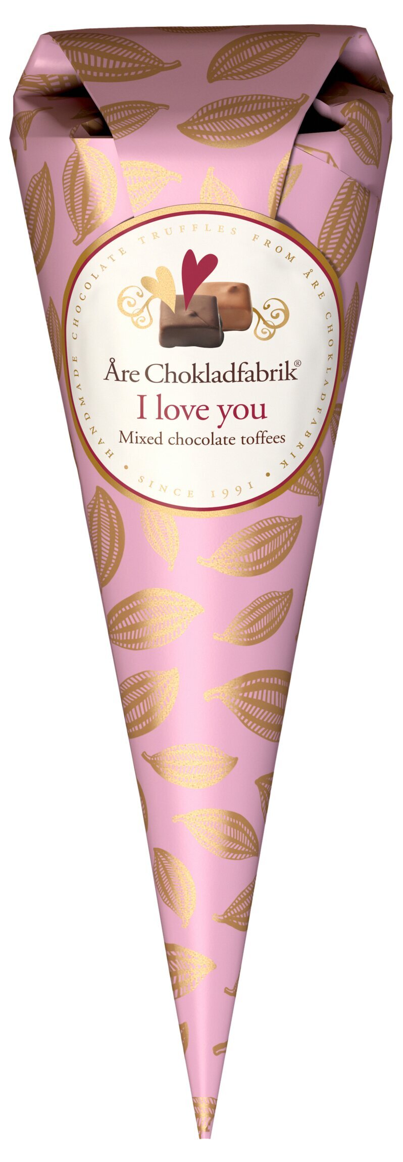 Överraska till Alla Hjärtans Dag med en strut av härligt god chokladkola från Åre chokladfabrik. Struten med budskapet I Love You är uppskattad present att få tillsammans med blommor.