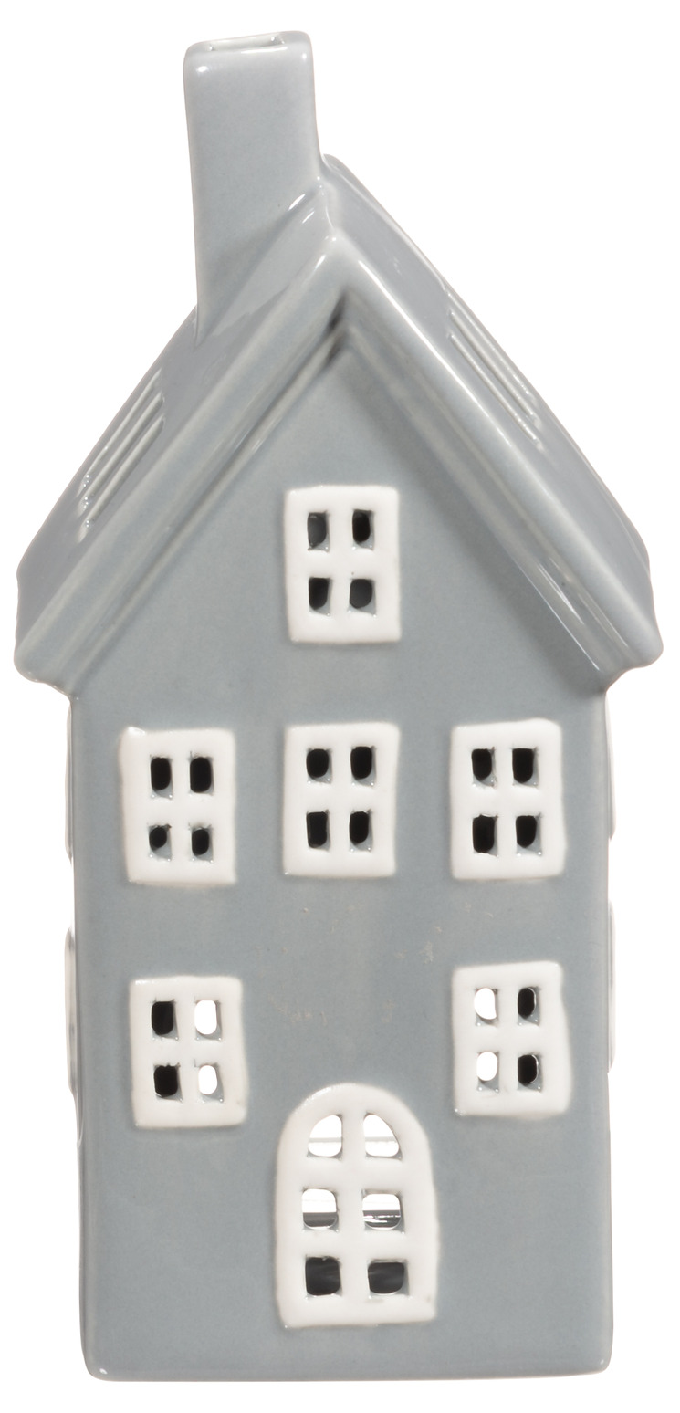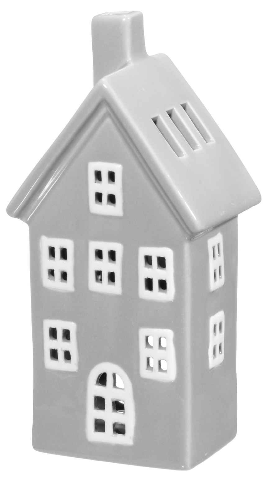Ge ditt hem en varm och rofylld känsla med denna vackra ljuslykta i form av ett hus. Den grå glasyren ger ett stilrent uttryck som smälter in i alla inredningsstilar, samtidigt som det mjuka ljuset genom fönstren skapar en mysig atmosfär. Perfekt för höstens mörka kvällar när du vill varva ner och omge dig med en harmonisk stämning.