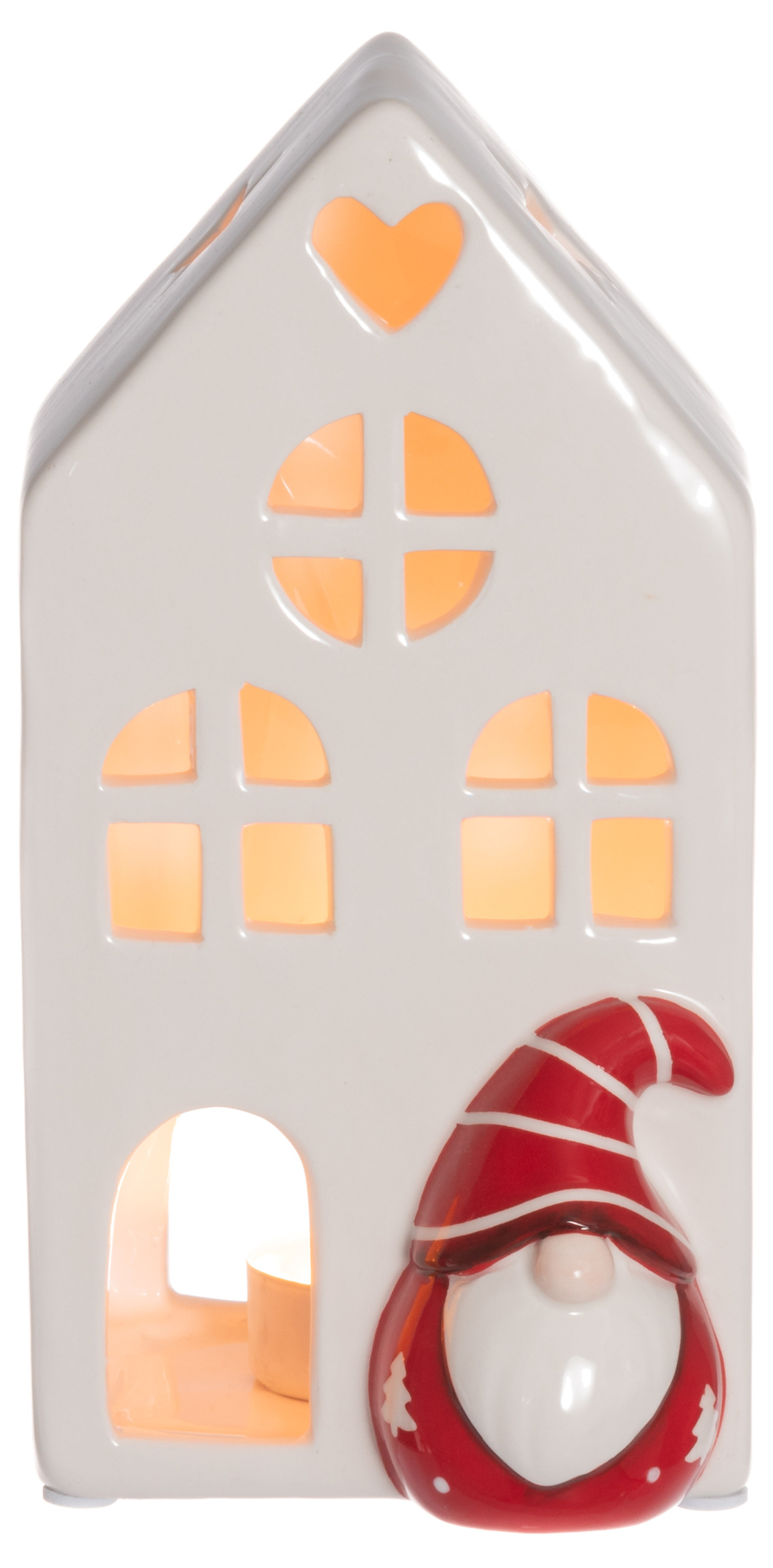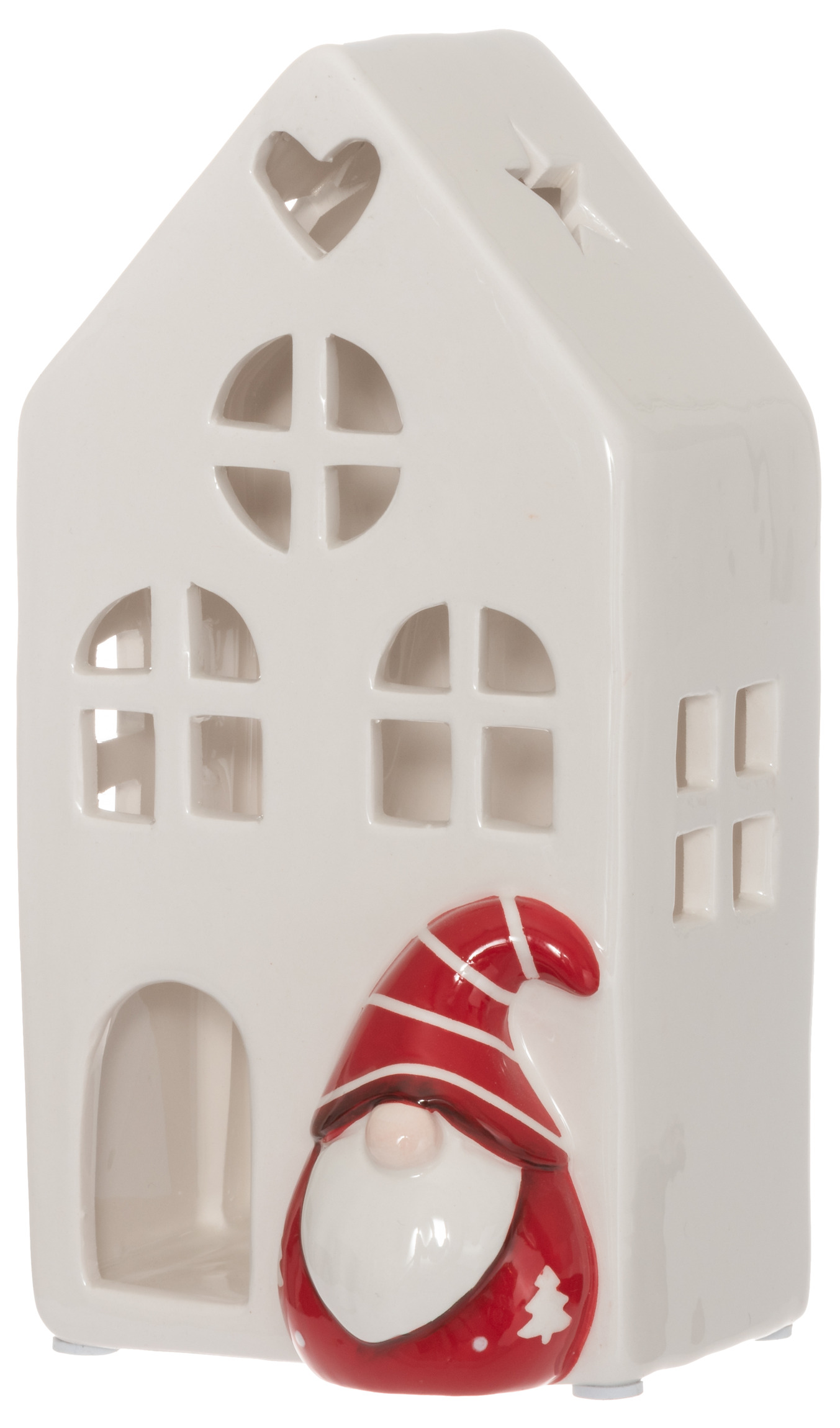 Låt julstämningen flytta in med denna underbara huslykta. De utskurna fönstren och hjärtat i taket sprider ett varmt och mysigt sken när du tänder ett ljus inuti. Utanför dörren står en charmig liten tomte i röd luva som ger lyktan en lekfull och härlig julkänsla.
