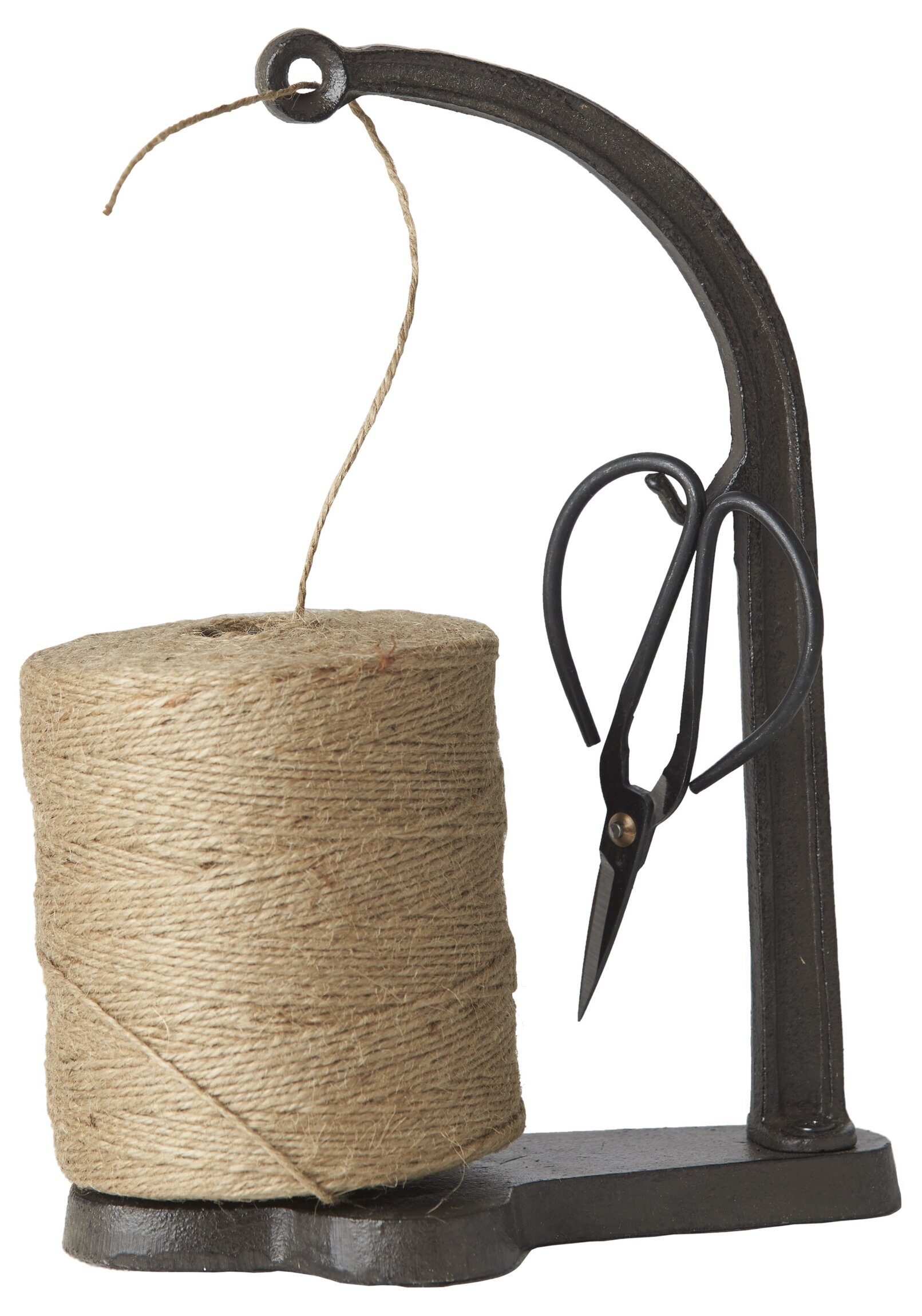 Dekorativ & praktisk trådhållare i gjutjärn inkl natursnöre & sax.