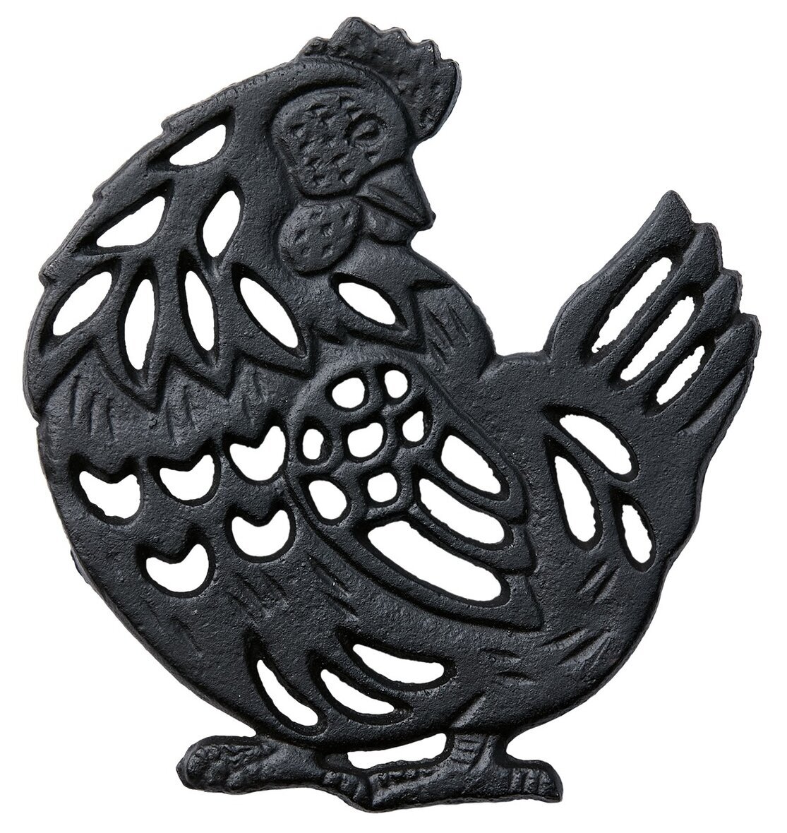 Låt köket få en rustik och lantlig känsla med detta vackra grytunderlägg i form av en höna. Tillverkat i gediget gjutjärn kombinerar det praktisk funktion med dekorativ charm. Perfekt för att skydda bordet från varma kastruller.