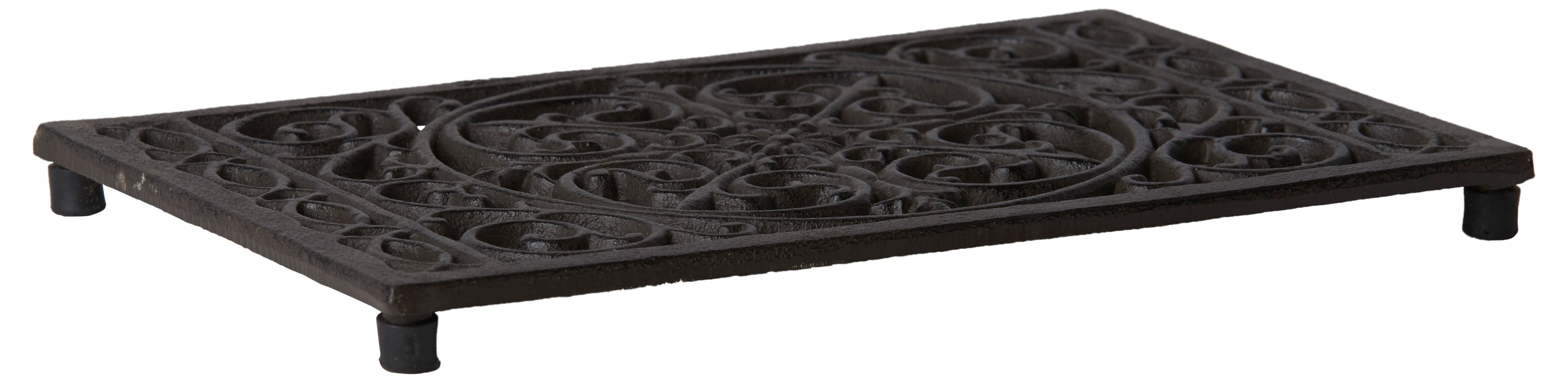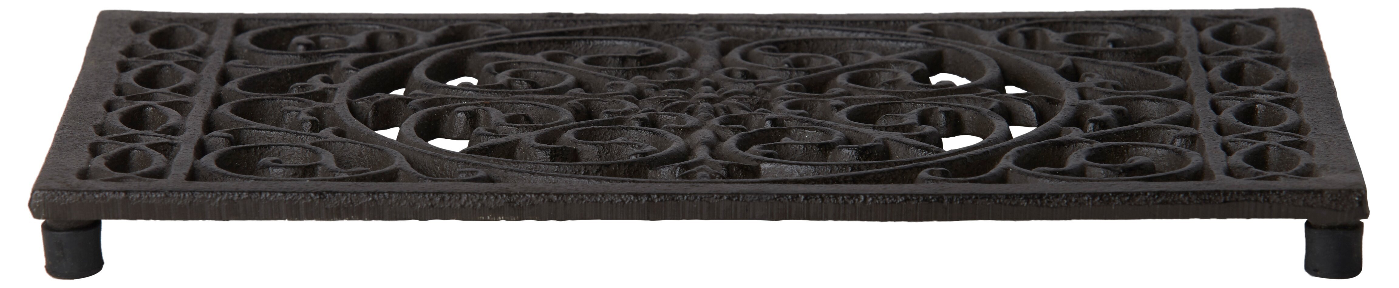 Vackert grytunderlägg i gjutjärn som fortsätter att patineras om det utsätts vid fukt. Användbart även som ljus/dekorationsfat.