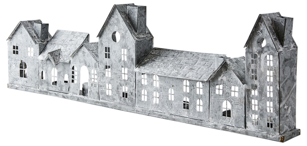 Dekorativ ljuslykta i metall med plats för värmeljus, ljuslyktan som är tillverkad i järn kommer att fortsätta att patineras om den utsätts för fukt.