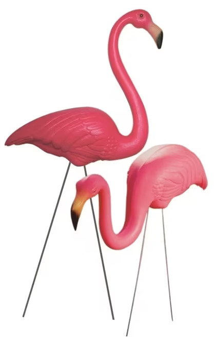 Bilden visar två dekorativa flamingos från Köpstaden.se, en mångsidig butik känd för sitt breda sortiment av produkter som passar för vardagliga behov. Denna specifika produkt går under namnet Pink Flamingos 2-Pack och kommer från varumärket Americana Classic Vintage.