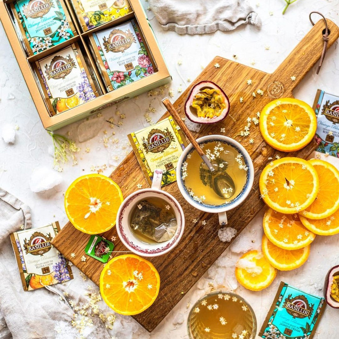 Upptäck en utsökt kollektion av svart och grönt Ceylon-te, vackert presenterad i en dekorativ metallask formad som en bok. Vintage Blossoms är en hyllning till blomsterprakt och friska fruktnoter – en smakresa som bjuder på både djup och lätthet i varje kopp. En elegant tebok fylld med blomstrande smaker. En perfekt gåva till teälskaren – eller en lyxig stund för dig själv.