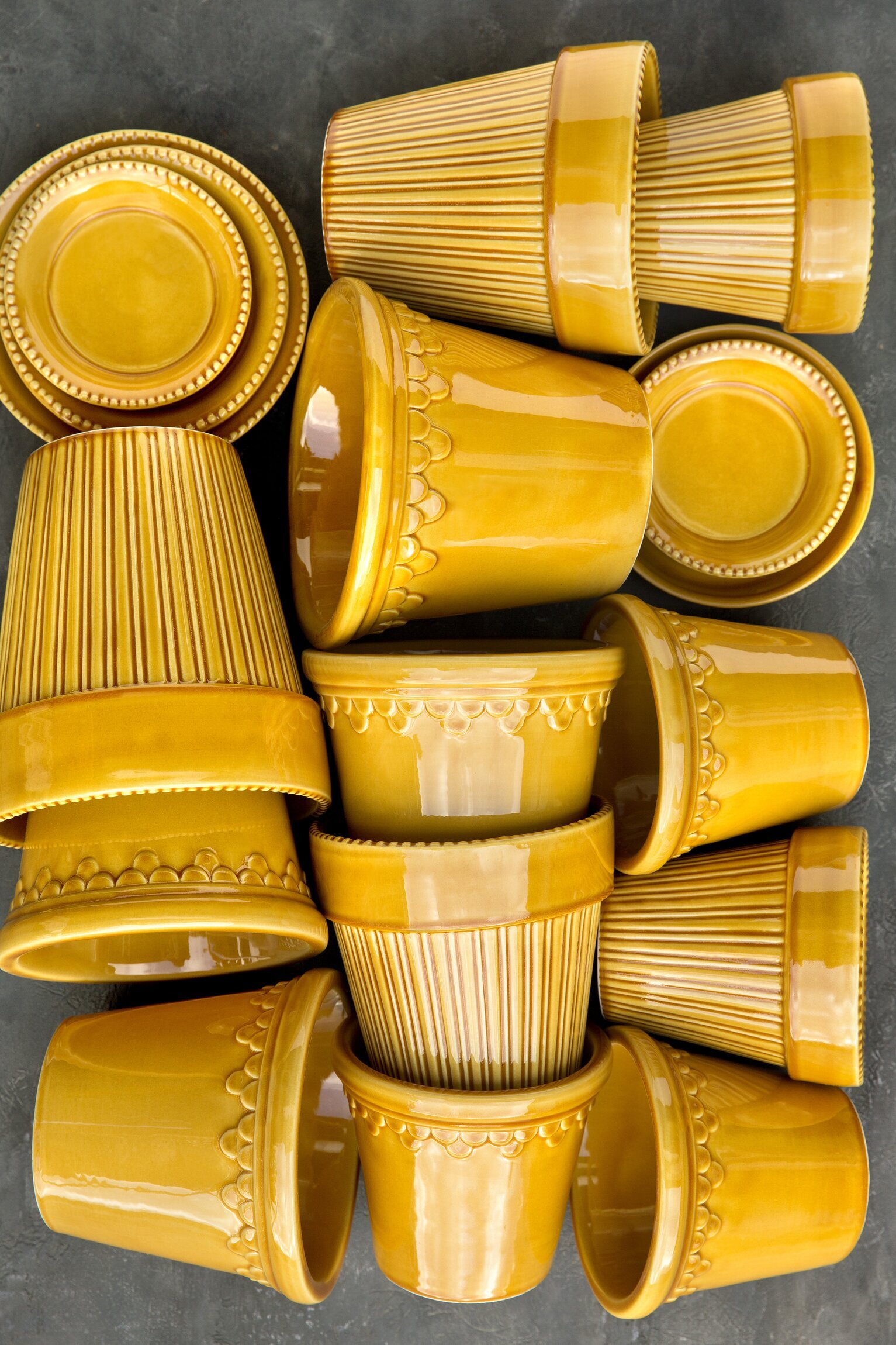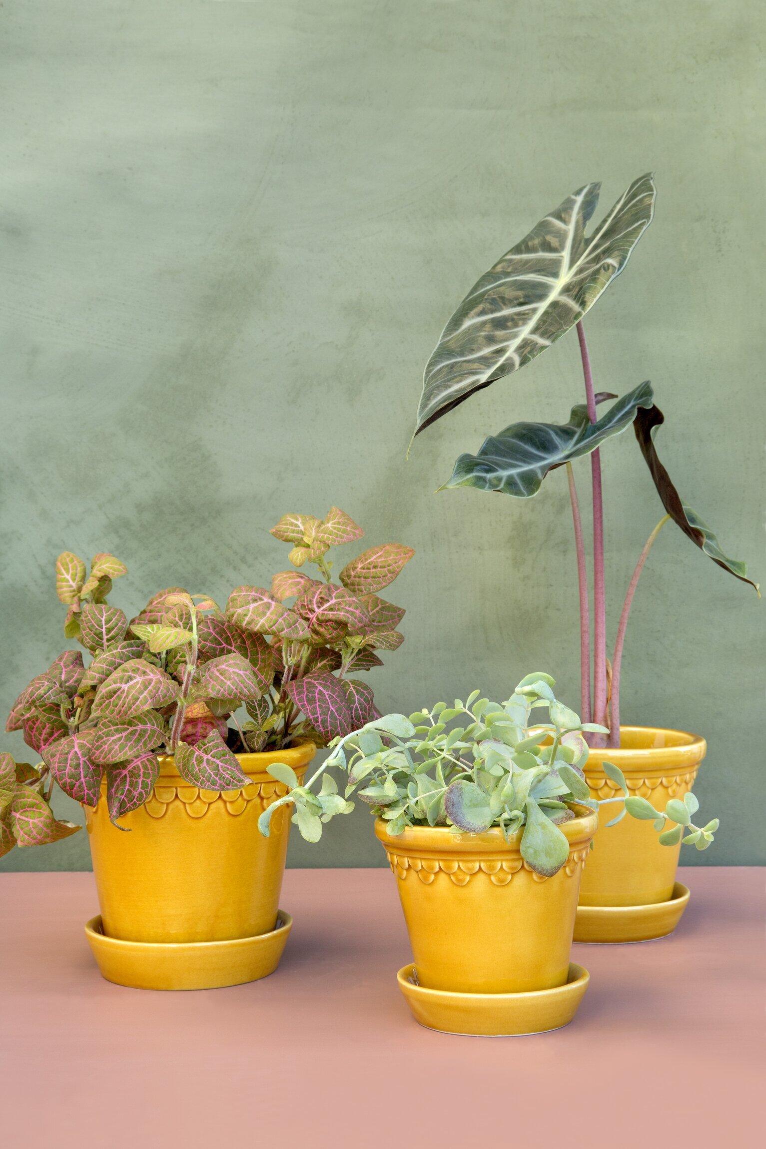 Ljuvlig glaserad lerkruka från Bergs Potter, tillverkad för hand i Toscana, Italien. Finns i flera olika färger & storlekar. Blomkrukan har hål i botten för att dränera bort överflödigt vatten, fat medföljer krukan.