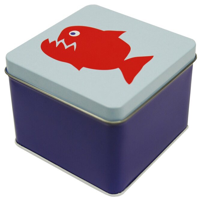 Liten förvaringsbox i plåt för småsaker som kex, majskrokar, godis, gem, snoddar, kvitton, smink, örhängen, skruvar, barnens småsaker, gummiband, nålar, sytillbehör, kritor, nycklar osv. Boxen är godkänd för matförvaring. Från Blafre Design. Mått: 10 x 10 x 7,5 cm. Diskas för hand.