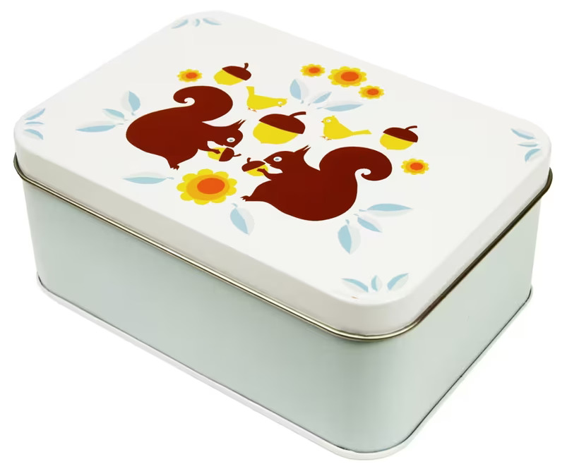 Förvaringsbox i plåt för småsaker eller som matsäck. Från: Blafre Design. Godkänd för matförvaring. Mått: 14 x 10 x 6 cm. Diskas för hand. Läs mer