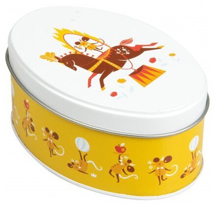 Bild av en lekfullt dekorerad ovalt formad plåtask