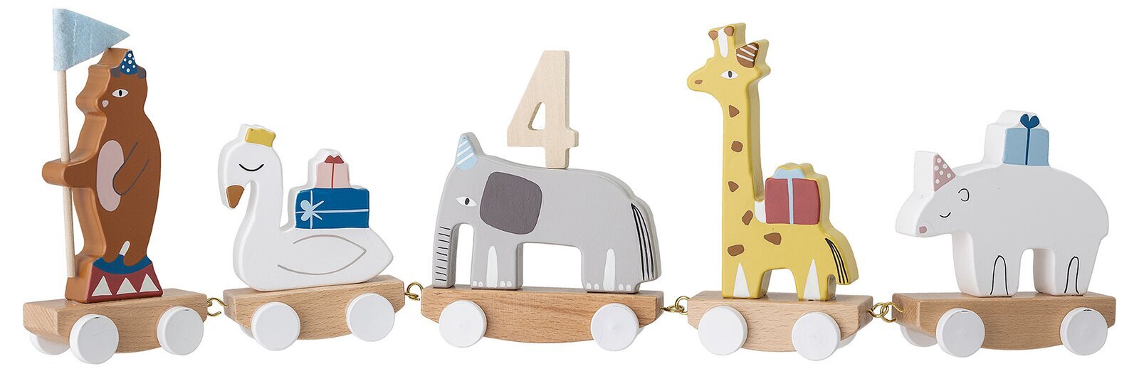 Fira födelsedagen på ett magiskt sätt med detta underbara födelsedagståg från Bloomingville. Tåget är dekorerat med söta djurfigurer och små presenter, vilket gör det till en perfekt dekoration för barnkalaset.