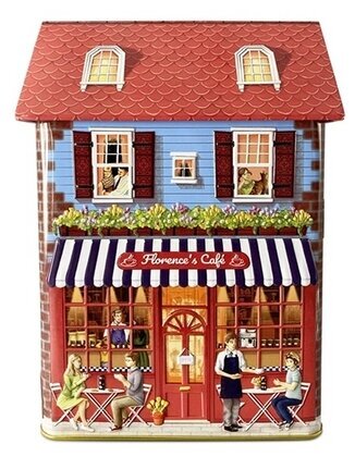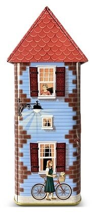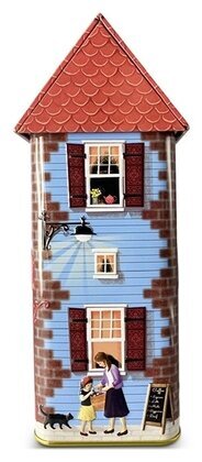 Dekorativ plåtburk i form av ett hus med vackra detaljer, kan användas till både kaffe & te. Läs mer