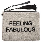 Vacker handbroderad väska i silver med text - Feeling Fabolous - som med fördel även kan användas som neccessär. Väskans baksida är svart & på sidan finns en ögla samt svart tofs.