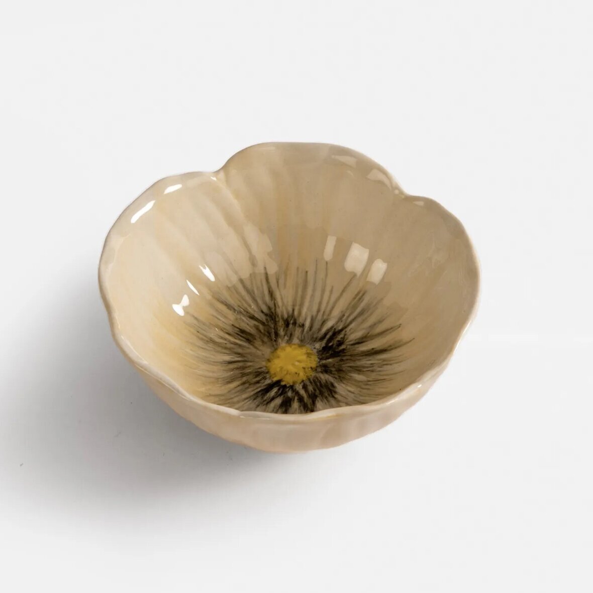 Vacker skål inspirerad av vallmo, en fin detalj till det dukade bordet. Porslinet tål maskindisk & är godkänt för livsmedel. Handgjord, färg- och strukturskillnader kan uppstå.