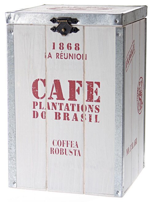Burk/box för kaffe. Gångjärn i bakkant för locket. Mått: 12 x 12 x 18 cm. Material: Trä och zink. Läs mer