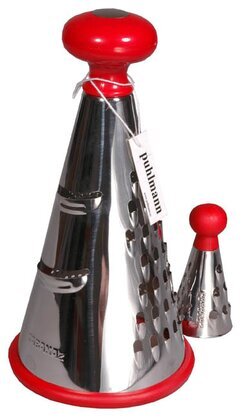 På bilden från Köpstaden.se syns två konformade rivjärn från varumärket Cabanaz, bägge utmärkande med sina blanka, rostfria ytor och karakteristiska röda detaljer. Den ena är en större modell och den andra en något mindre version, som tillsammans skapar ett harmoniskt helhetsintryck. Dessa husgeråd är centrala i många kök, inte bara för sina praktiska funktioner utan även för sin visuella framtoning.