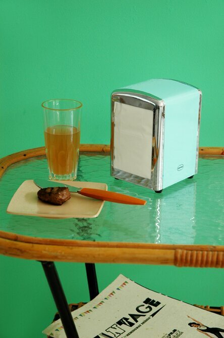 Servettställ i plåt & krom. Snyggt att ha ståendes framme i kök eller på bord. Servetter medföljer ej men finns att köpa här. Mått:11 x 10 x 15 cm. Läs mer