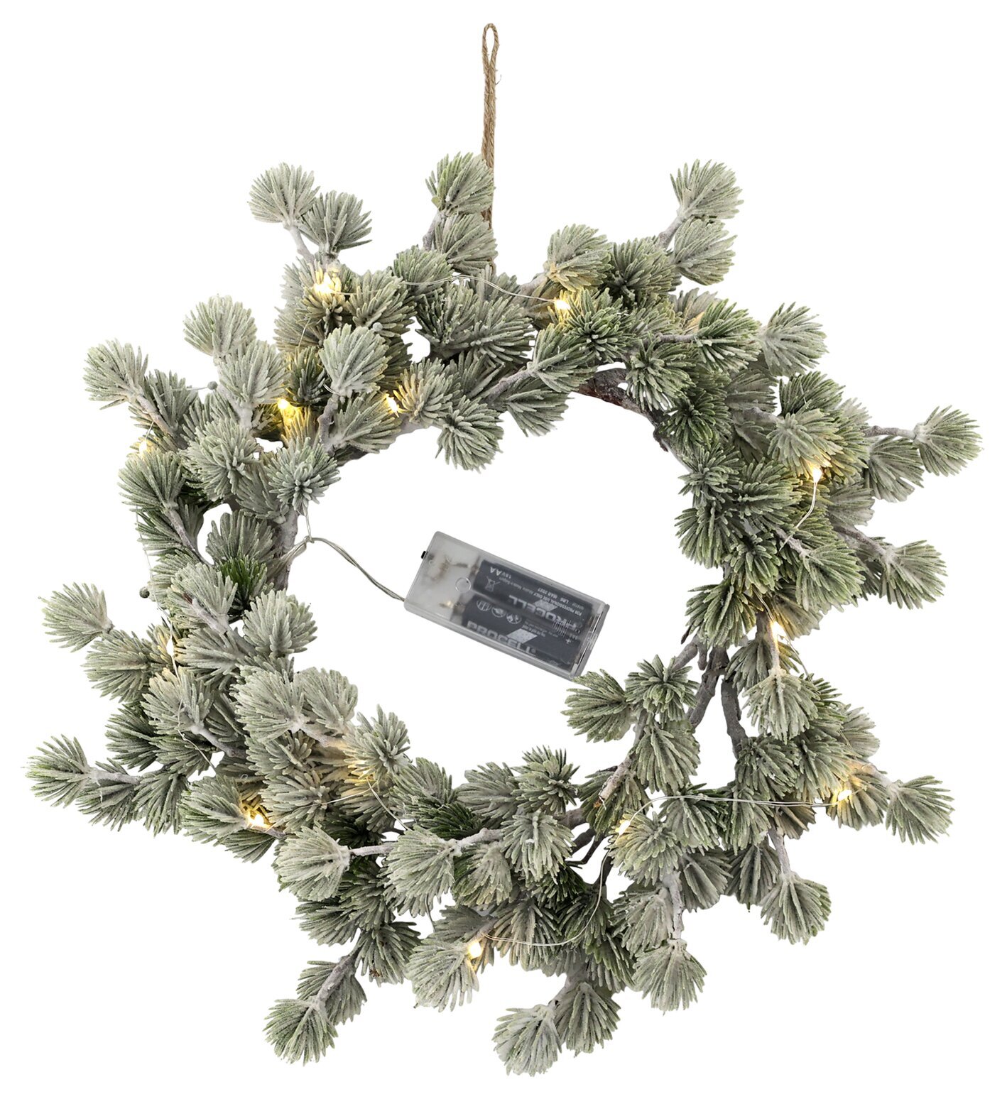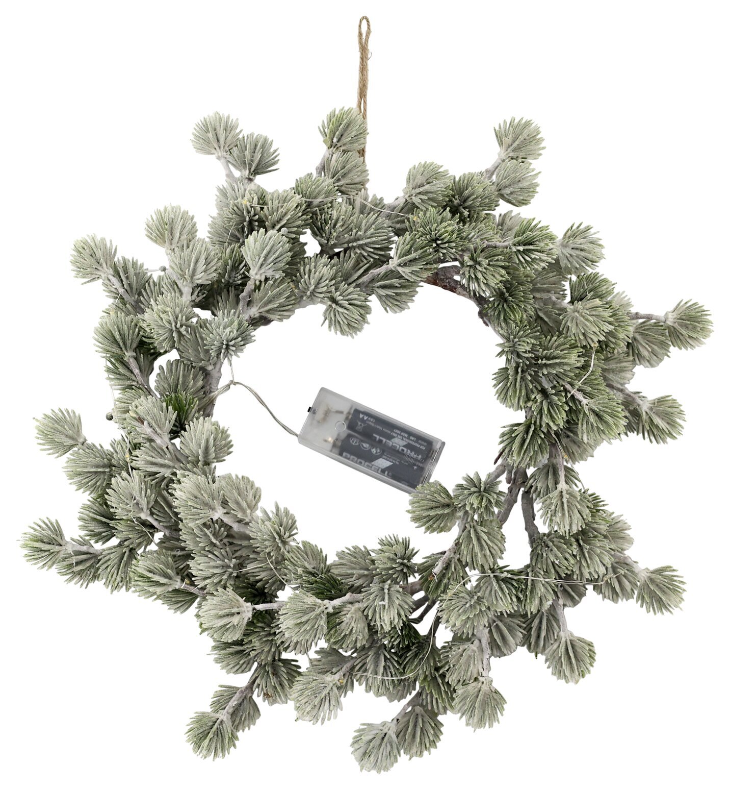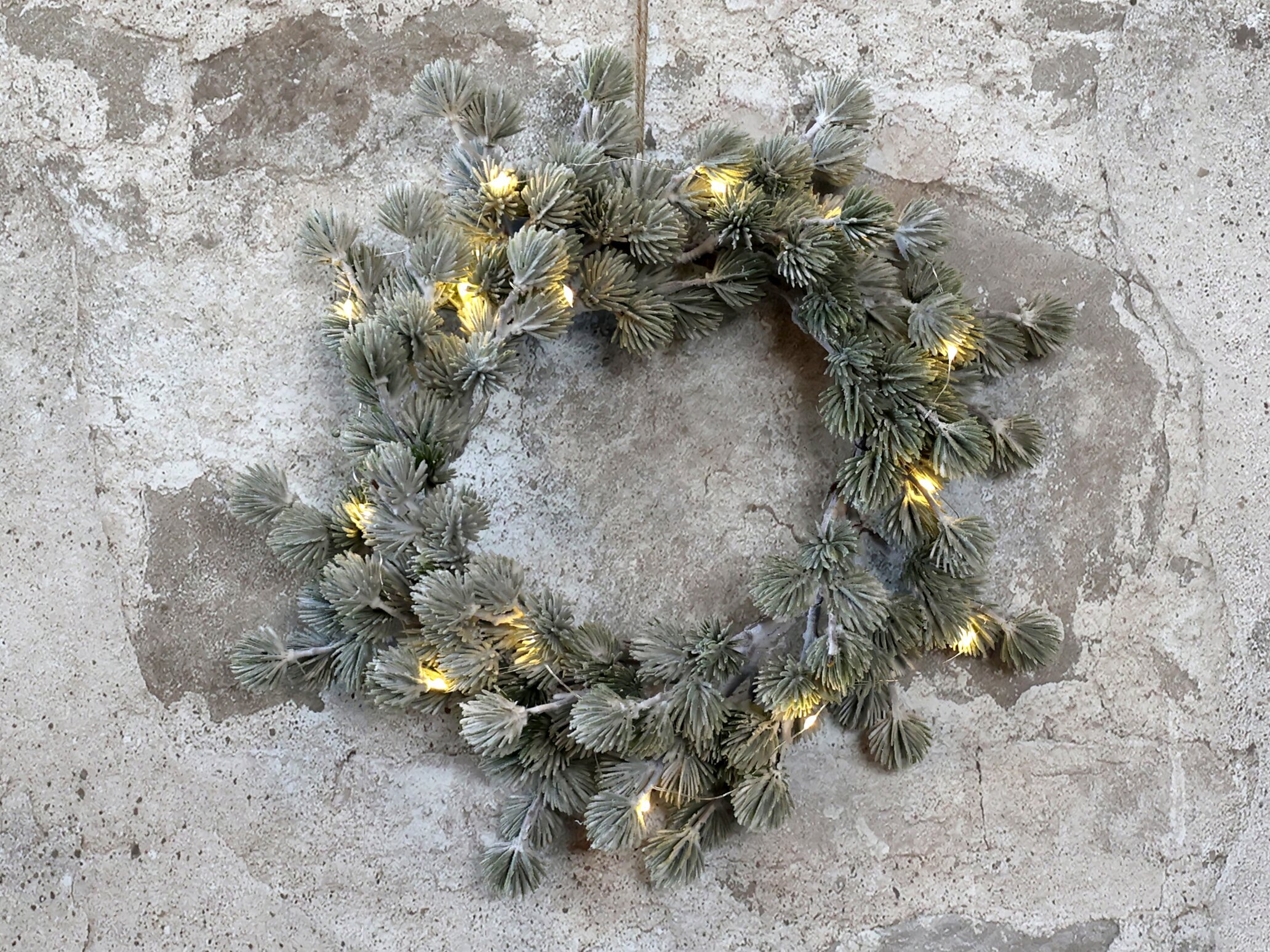 Vacker & naturtrogen krans med LED-belysning, fin att hänga på ytterdörren eller på grinden. Från Chic Antique.