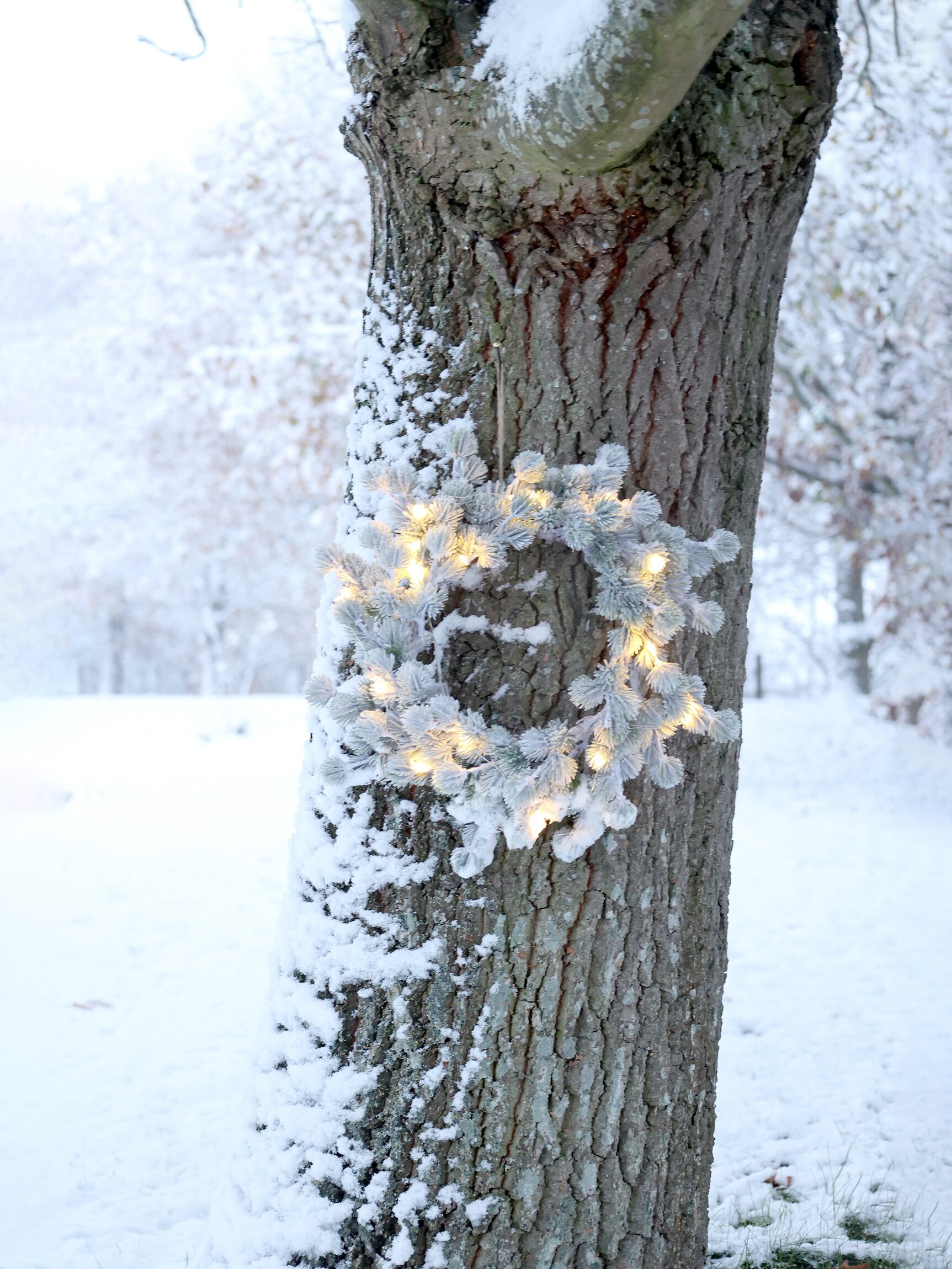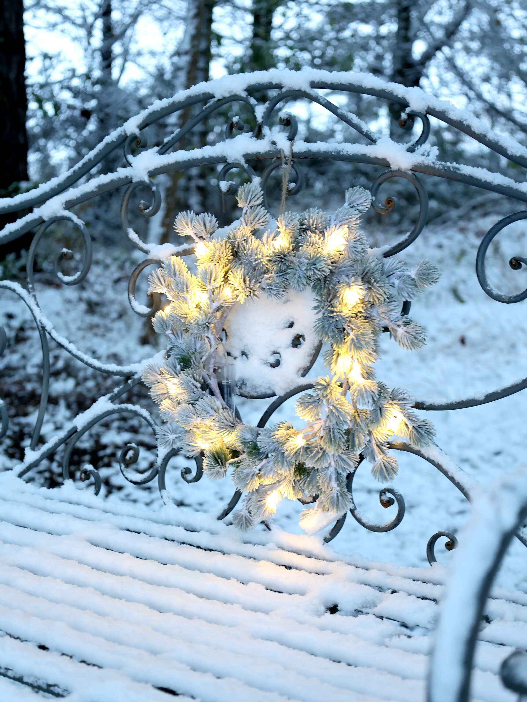 Vacker & naturtrogen krans med LED-belysning, fin att hänga på ytterdörren eller på grinden. Från Chic Antique. Läs mer