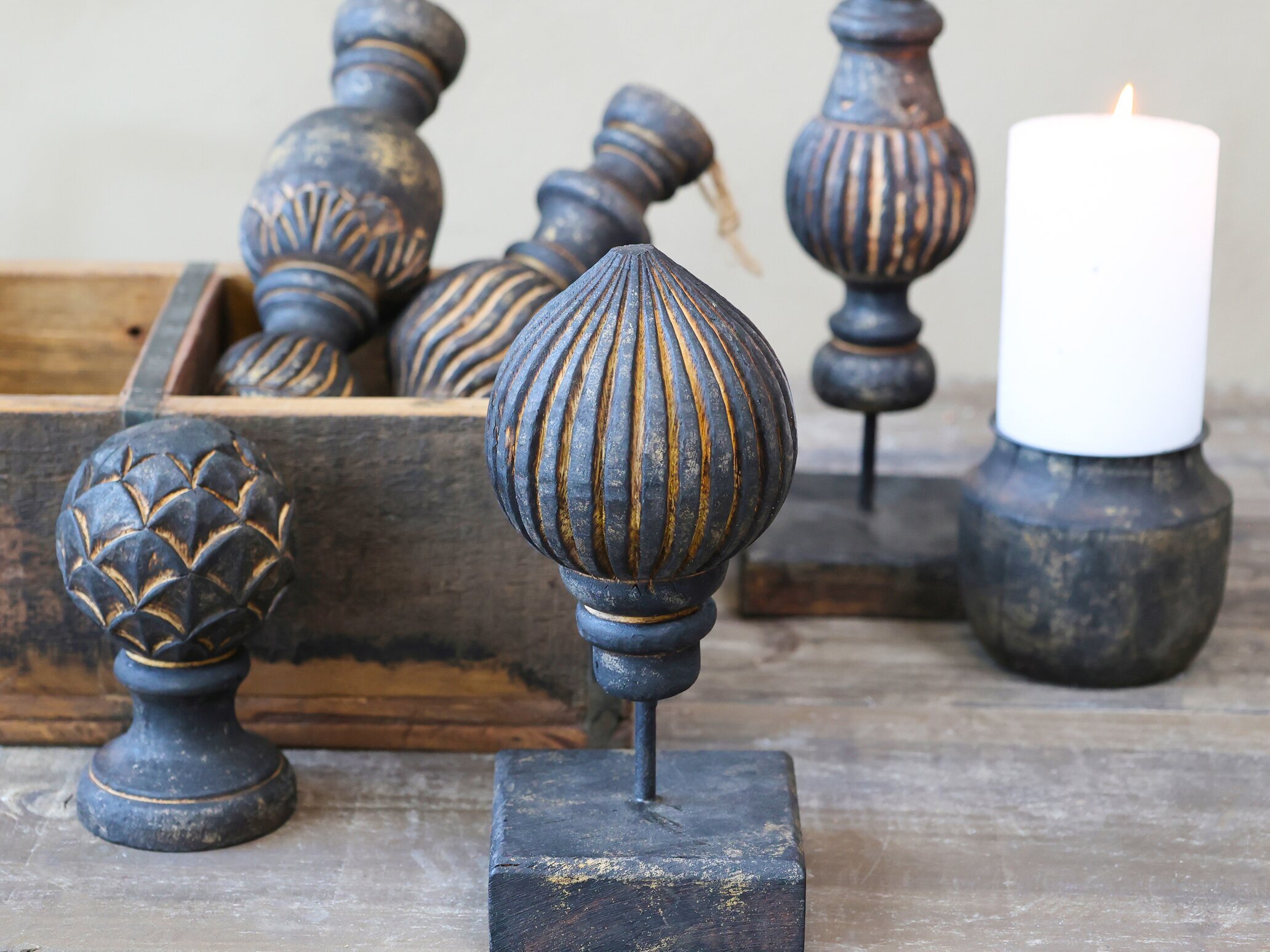 Vacker dekoration i en fin mörkbrun nyans med räfflad design, från Chic Antique.