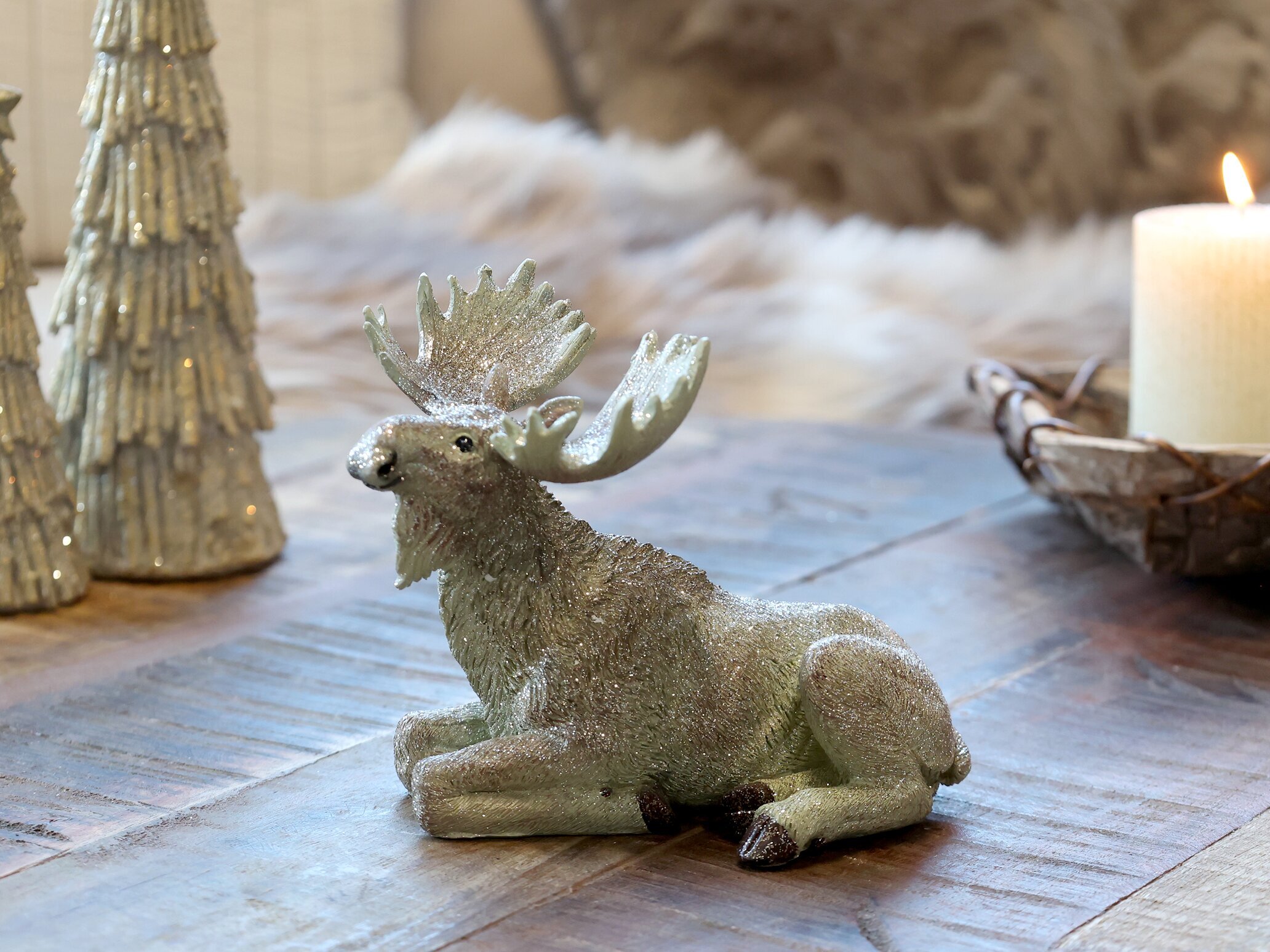 Denna omsorgsfullt sammansatta bild från Köpstaden.se ger en känsla av hur Glittrande Älg Verte och andra produkter från Chic Antique kan användas för att skapa en varm och inbjudande atmosfär i hemmet. Kombinerat med butikens breda utbud av andra dekorationer och tillbehör, erbjuder denna älgfigur både en estetisk upplevelse och en praktisk lösning för inredningsentusiaster som söker det lilla extra.
