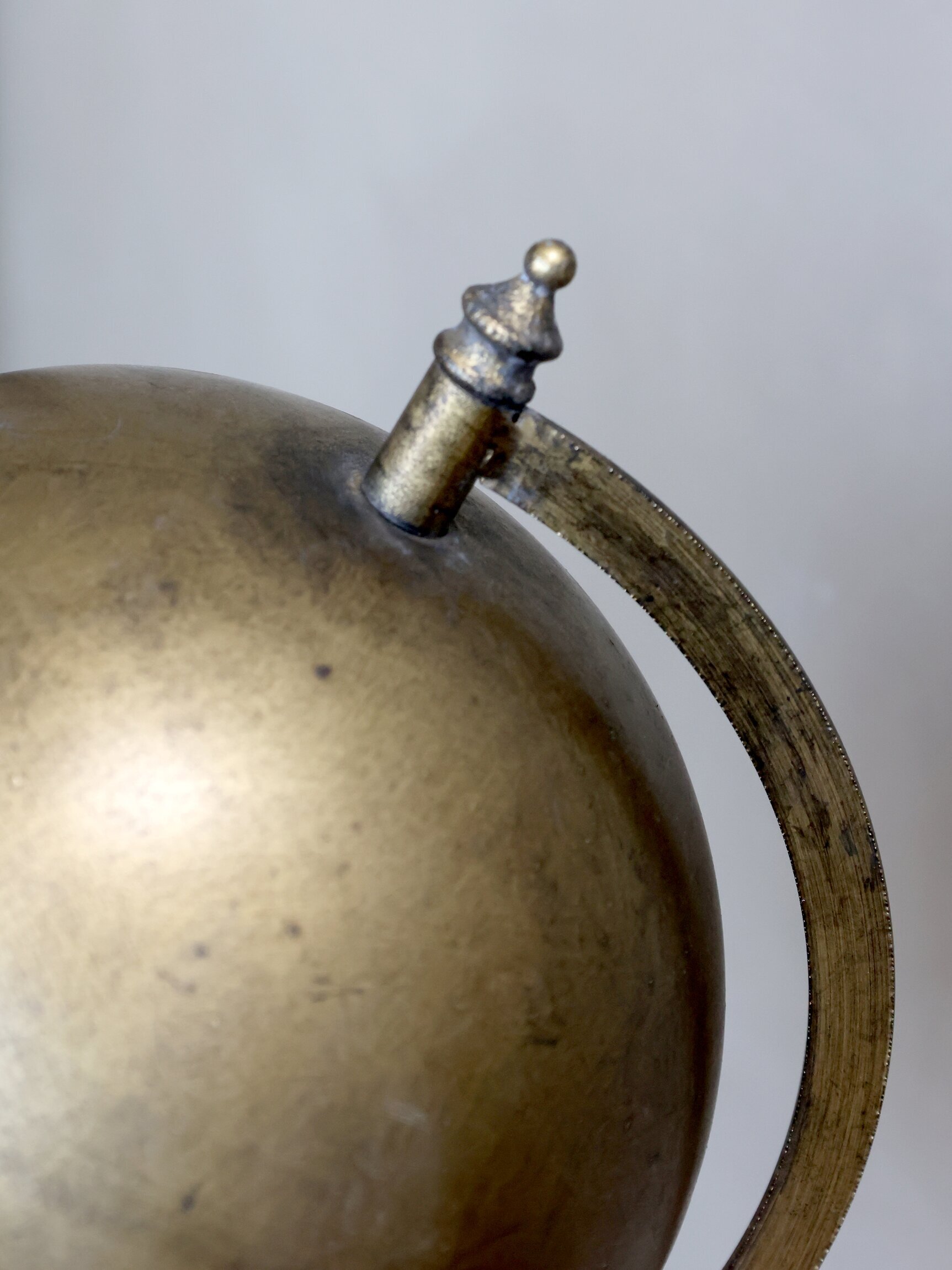 Dekorativ glob i antik mässing, från Chic Antique. Globen är tillverkad för hand & blir med sitt eleganta utseende en vacker detalj i hemmet.