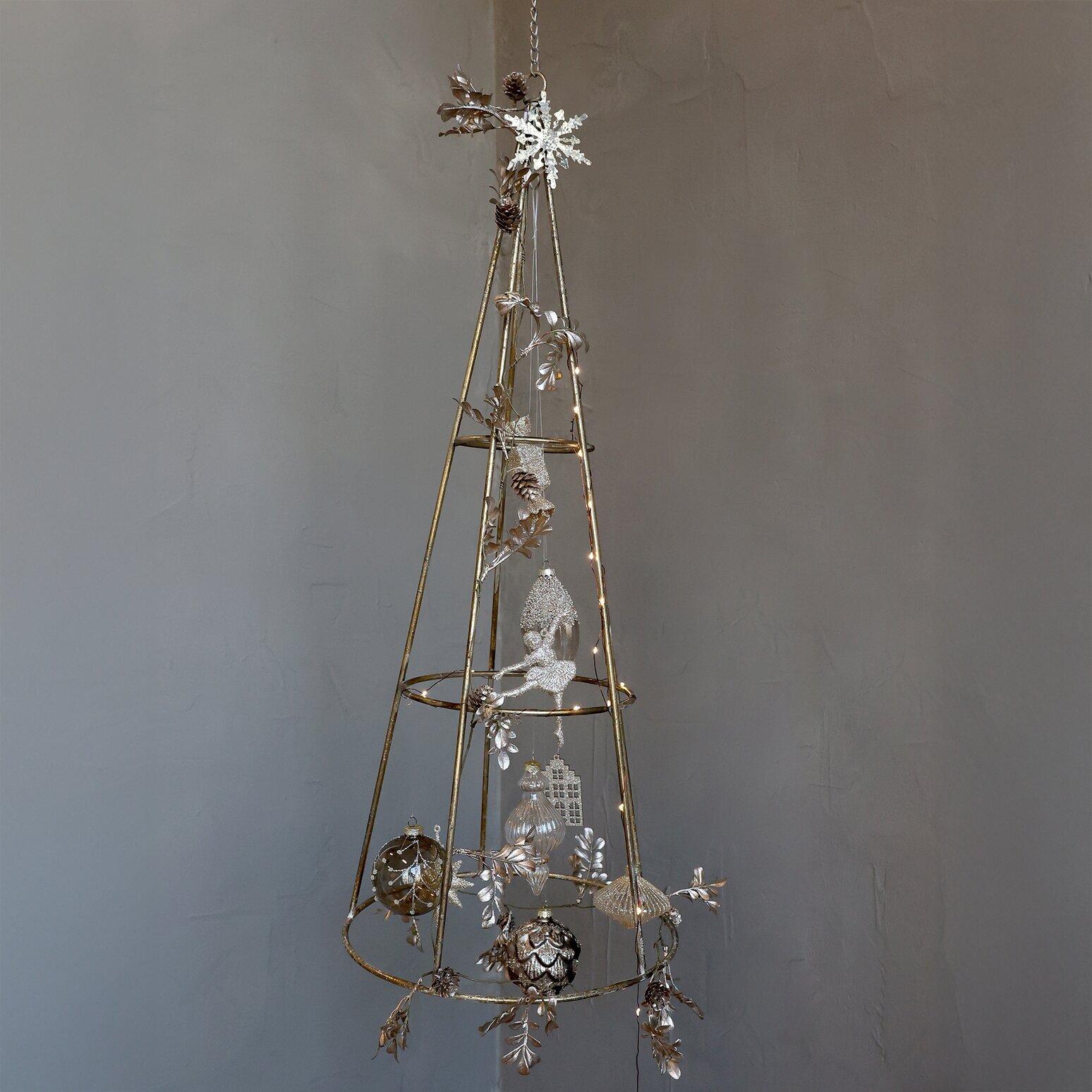 En elegant och stilren hängande gran som blir ett vackert alternativ till den klassiska julgranen. Den öppna metallramen gör det enkelt att dekorera med ljusslingor, kvistar eller julkulor – och resultatet blir ett personligt och stämningsfullt blickfång i hemmet.