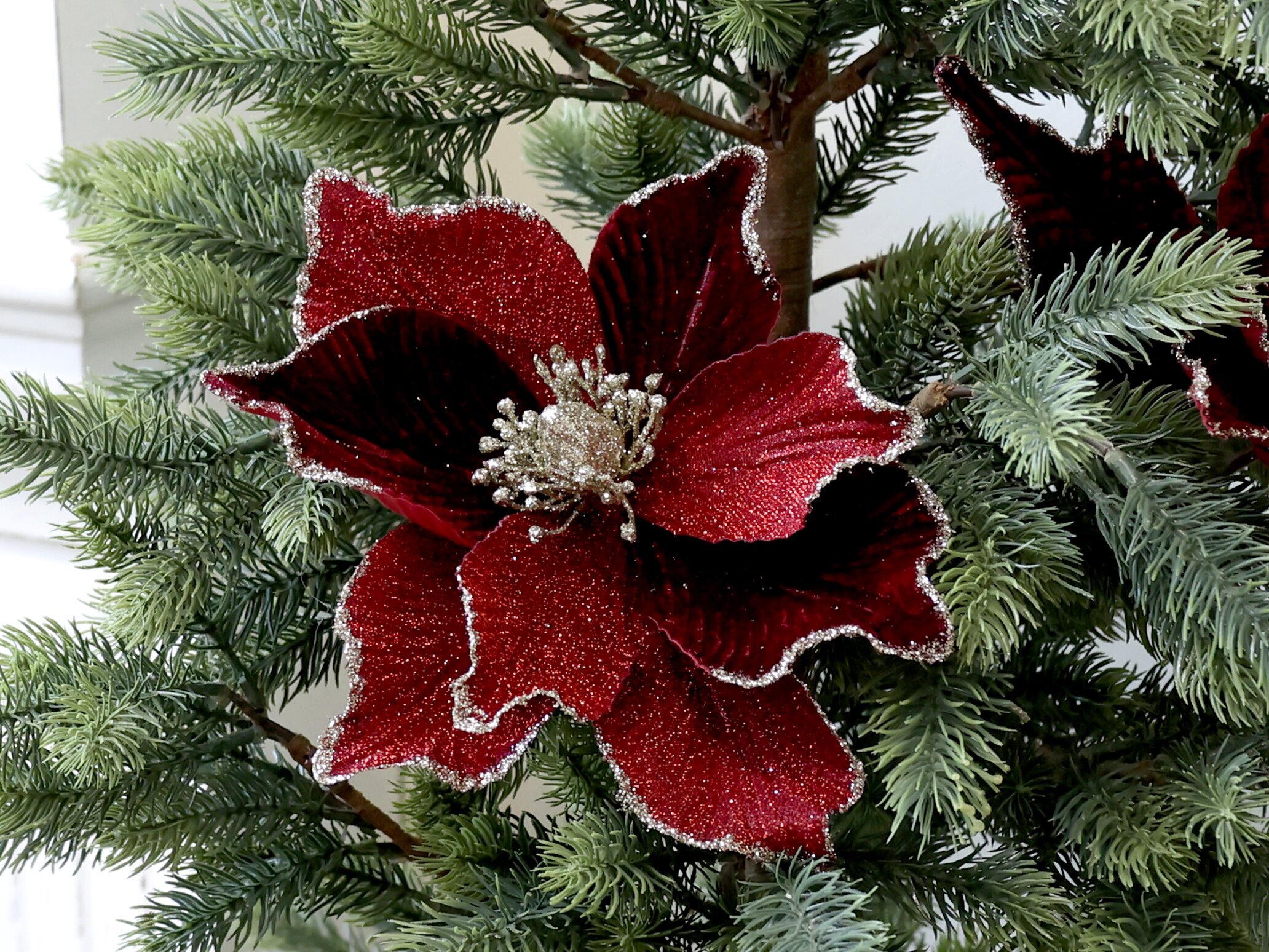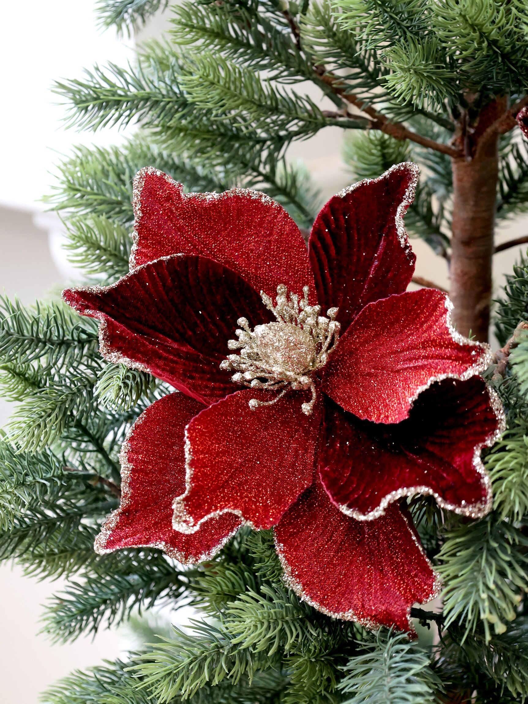 Dekorativ julblomma med glitter & clips som blir en vacker detalj i julgranen. Från Chic Antique.