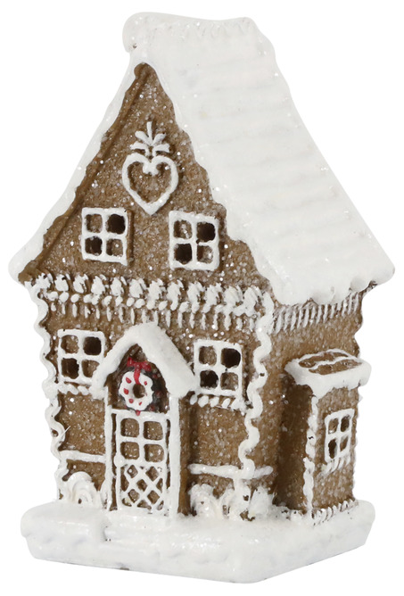 Skapa en magisk julstämning med detta charmiga pepparkakshus med inbyggd LED-belysning. Huset är vackert dekorerat med snödetaljer och glittrande sockerliknande yta, som ger känslan av ett riktigt nybakat pepparkakshus. När lamporna tänds sprids ett varmt sken genom fönstren och gör dekorationen ännu mer levande.