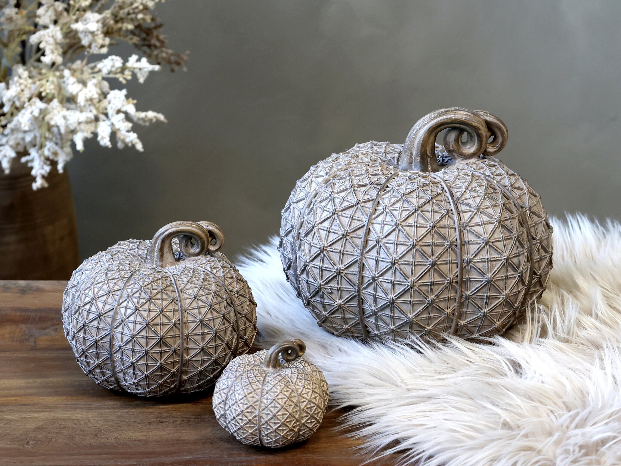 Dekorativ liten prydnadspumpa med guldnyanserade detaljer. Kan användas både inne- som utomhus & blir en fin höstdetalj. Från Chic Antique.