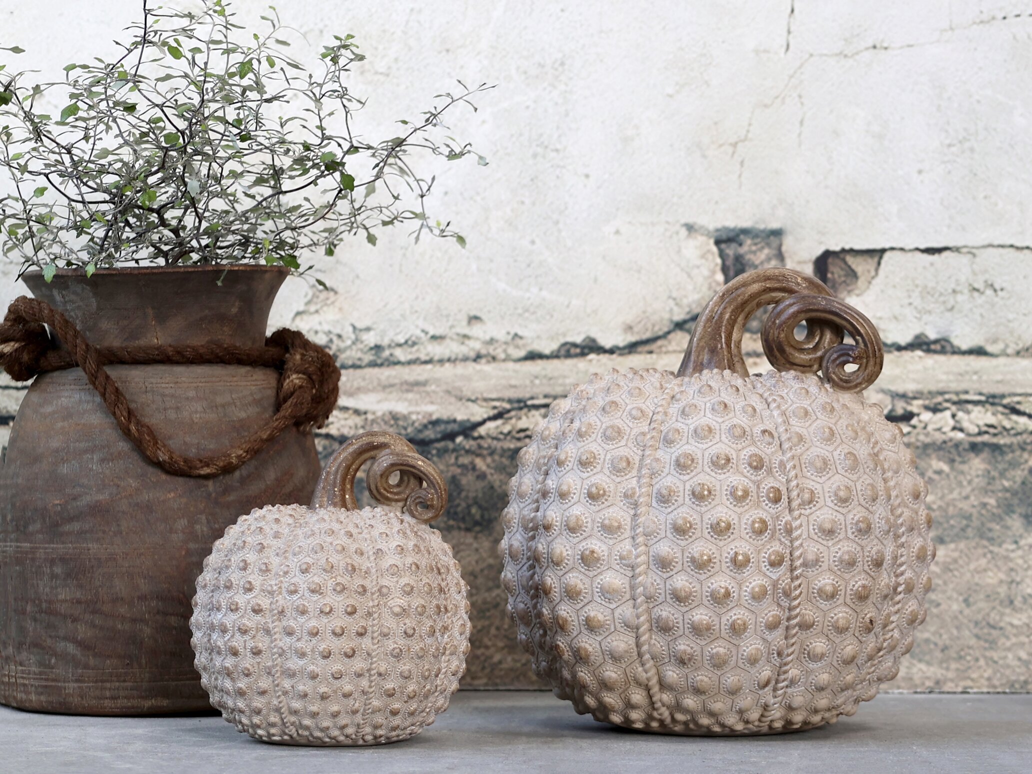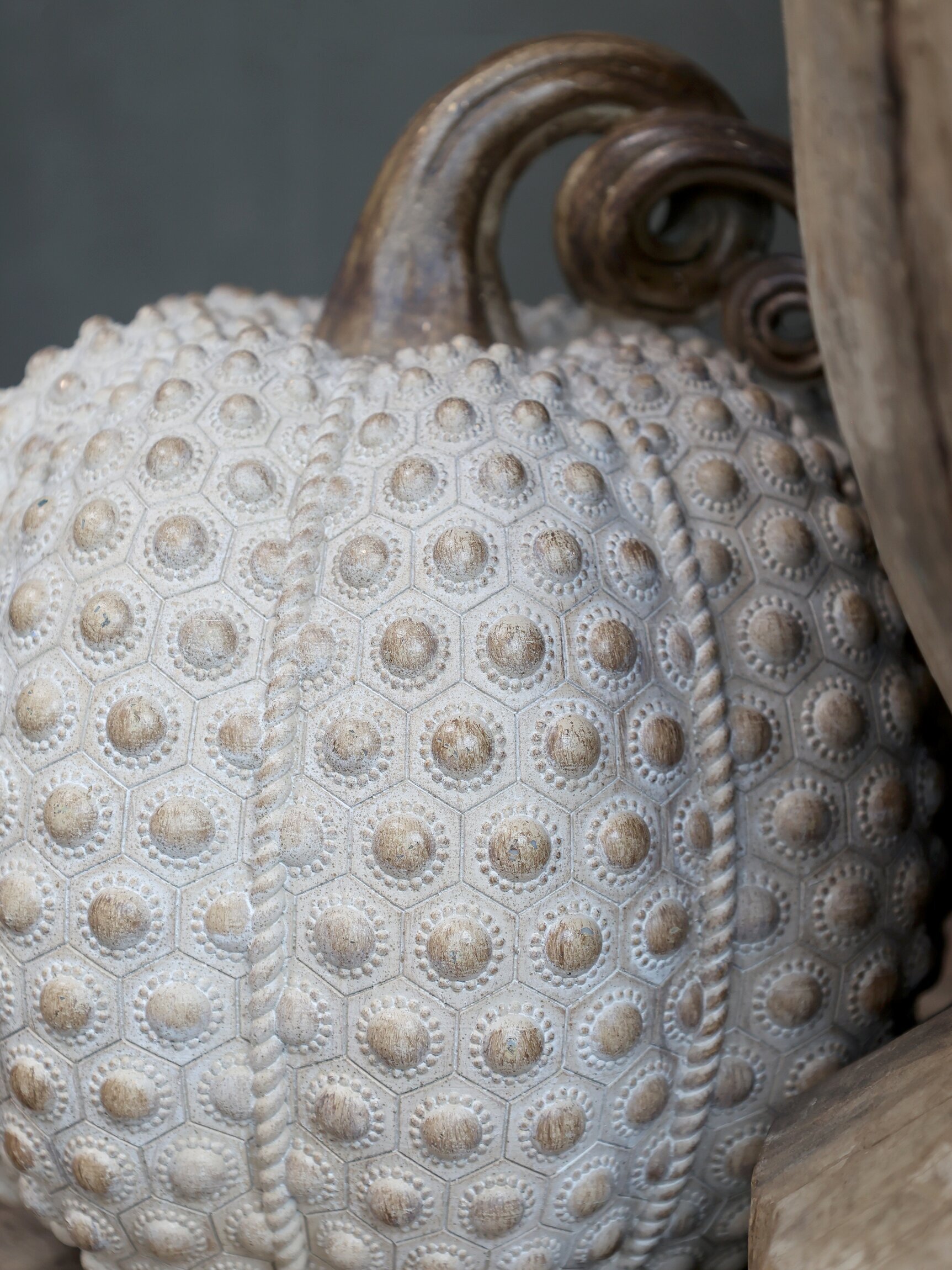 Vacker pumpa med dekorativa detaljer i en fin nyans av antik latte, finns i flera storlekar & varianter. Passar både inne- som utomhus.