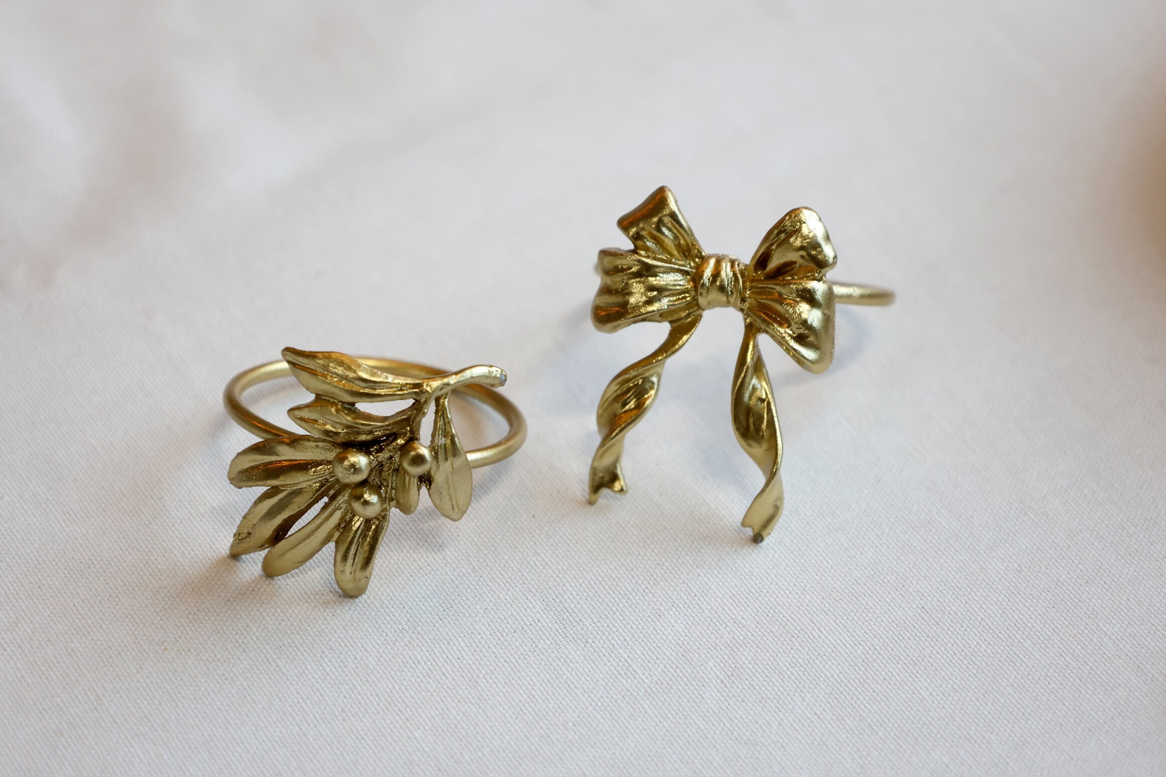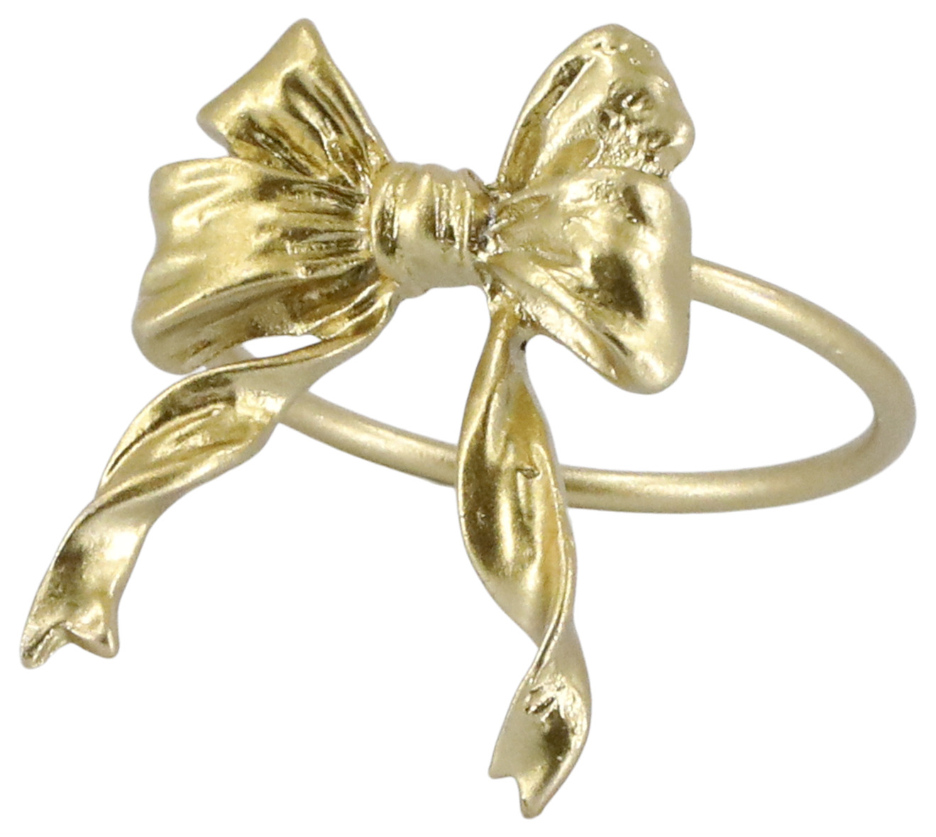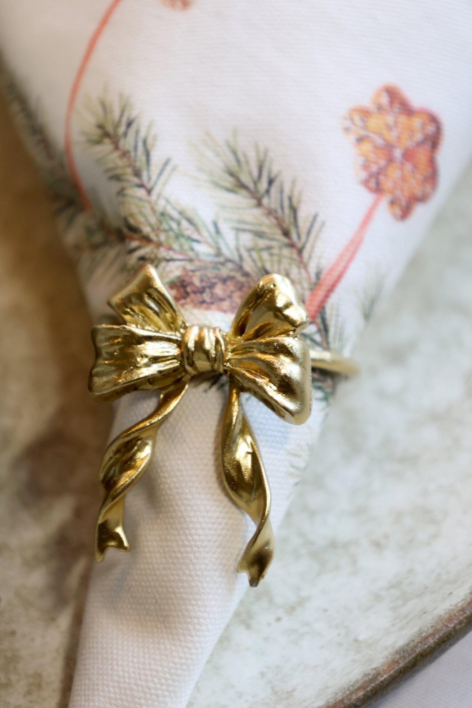 Ge dukningen en extra touch av elegans med denna vackra servettring i form av en rosett. Den gyllene finishen ger ett festligt intryck och gör sig lika fint till julbordet som vid andra högtider eller middagar.
