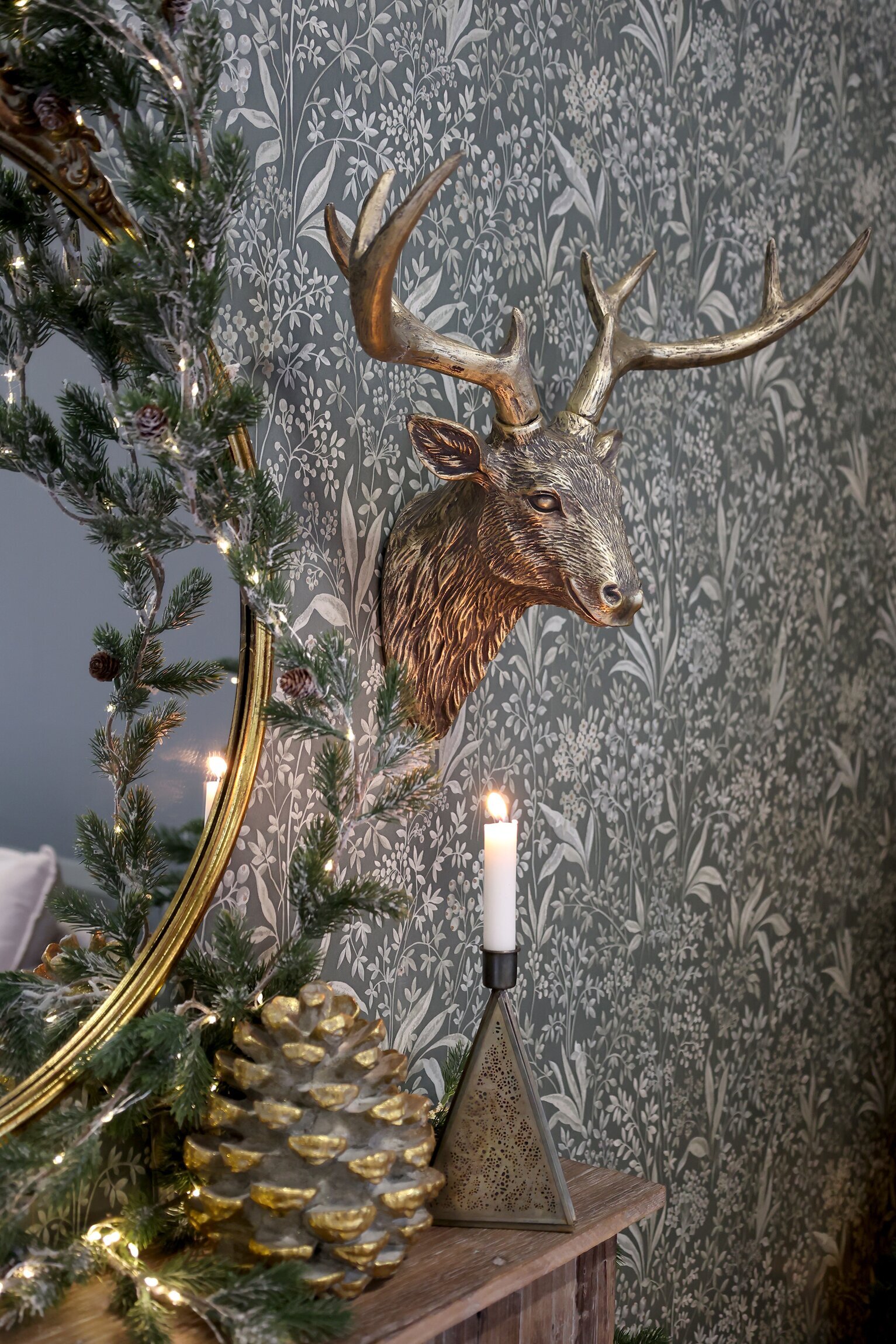 Perfekt som juldekoration men även vacker året runt – lika fin över öppna spisen, i hallen eller som ett blickfång i vardagsrummet. Hjorthuvudet är enkelt att hänga upp tack vare upphängningsfäste på baksidan.