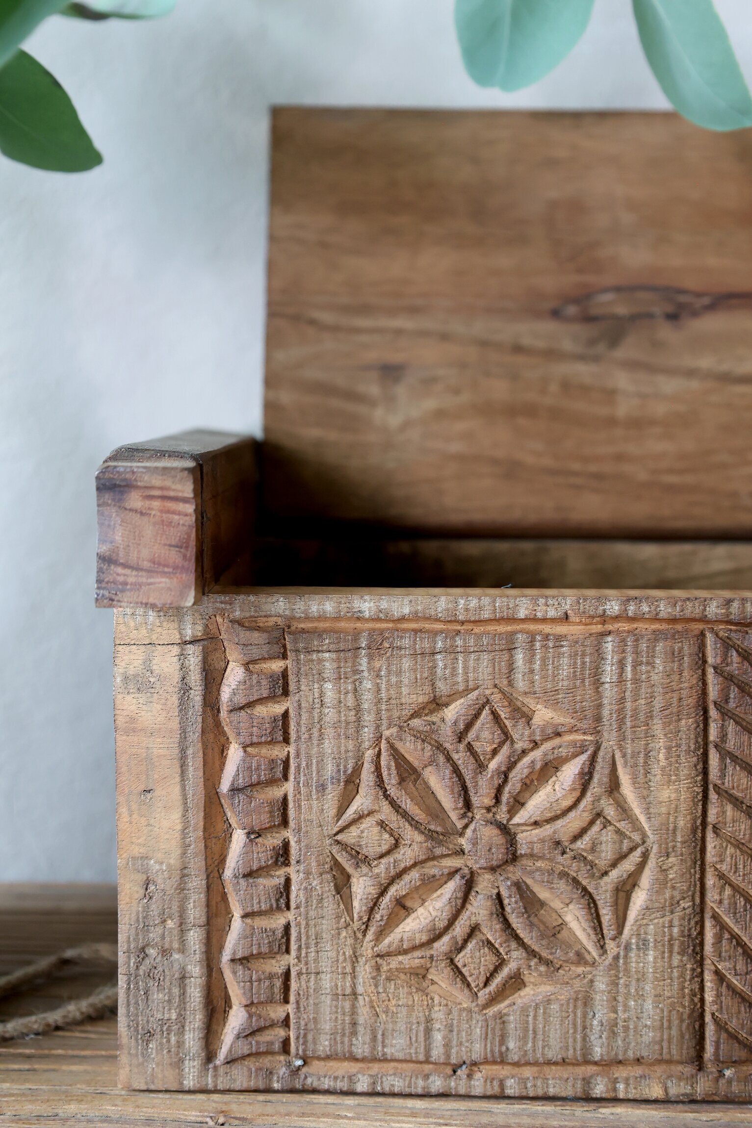 En vacker och rustik träbox med utstansat mönster, tillverkad i återvunnet trä. Boxen passar perfekt som förvaring för småsaker i köket, hallen eller vardagsrummet – lika fin att ha framme som den är praktisk att använda.