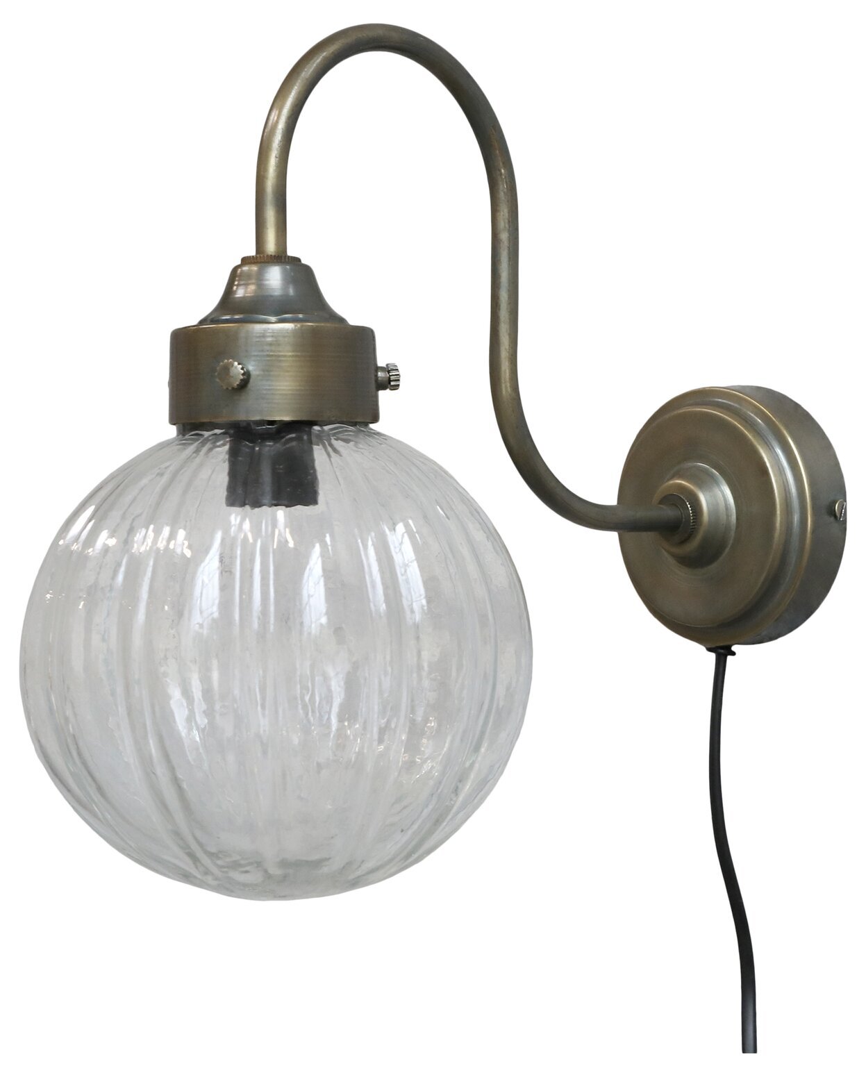 Vacker lantlig vägglampa med detaljer i antik mässing. Från Chic Antique.