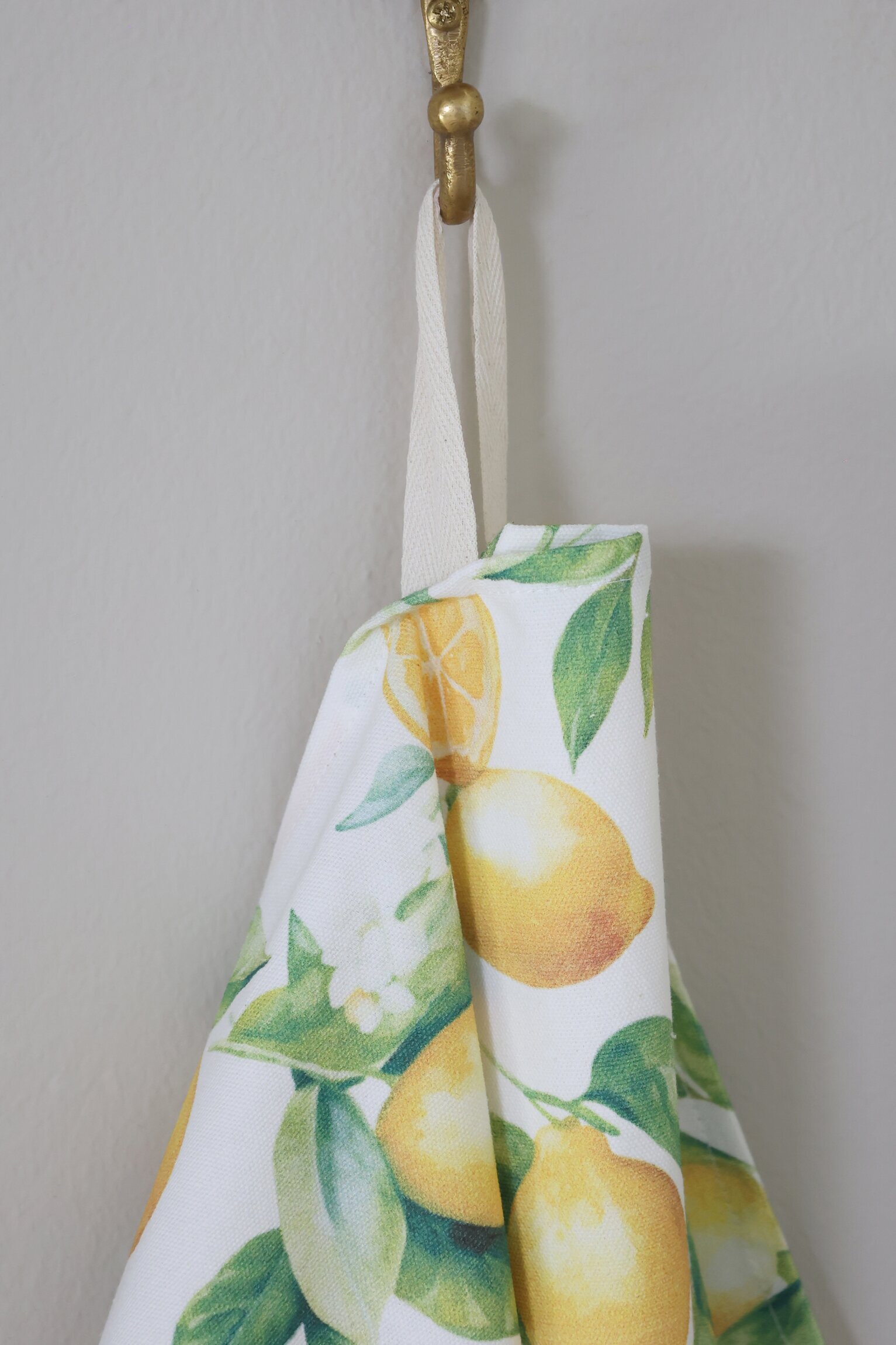 En fräsch och somrig kökshandduk med ett vackert citronmönster som för tankarna till soliga dagar och medelhavskänsla. De mjuka färgerna i gult och grönt ger ett livfullt men ändå harmoniskt intryck i köket.