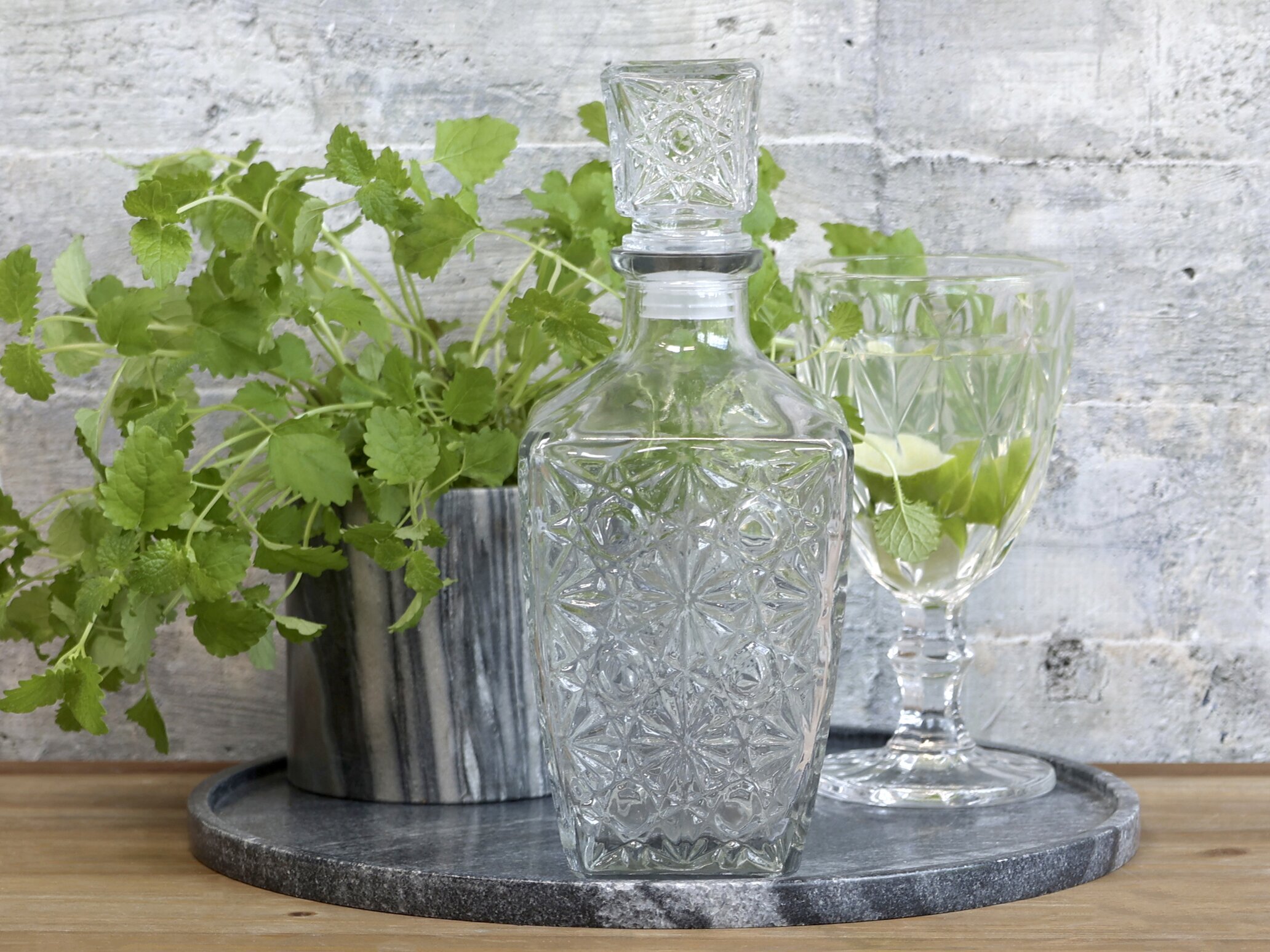 Glaskaraff med dekorativt blomstermönster, finns i flera olika varianter. från Chic Antique. Läs mer