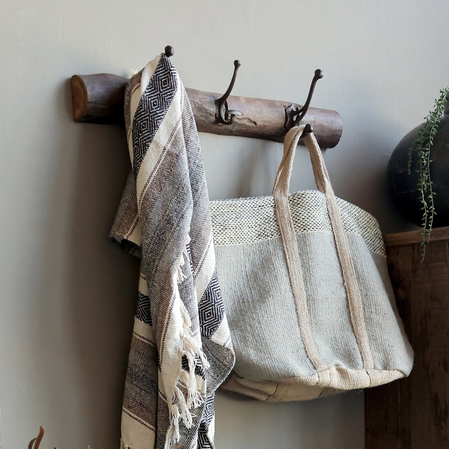Skapa en rustik och stilfull atmosfär i ditt hem med denna charmiga klädhängare i återvunnet trä och metallkrokar. Perfekt för att hänga upp dina jackor, väskor eller accessoarer.