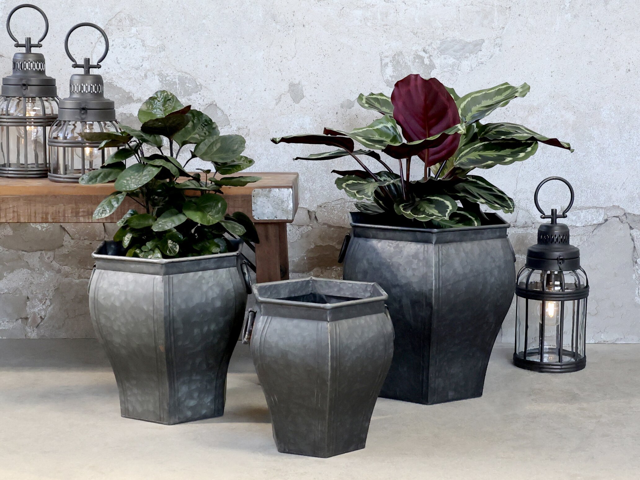 Vacker kruka med handtag till plantering av både små & stora växter, finns i 3 olika storlekar. Från Chic Antique. Krukan som är tillverkad i zink kan med fördel användas utomhus då den är tålig mot väder & vind. Vid användning inomhus bör ett plastskydd eller liknande användas inuti krukan då den ej är vattentät.