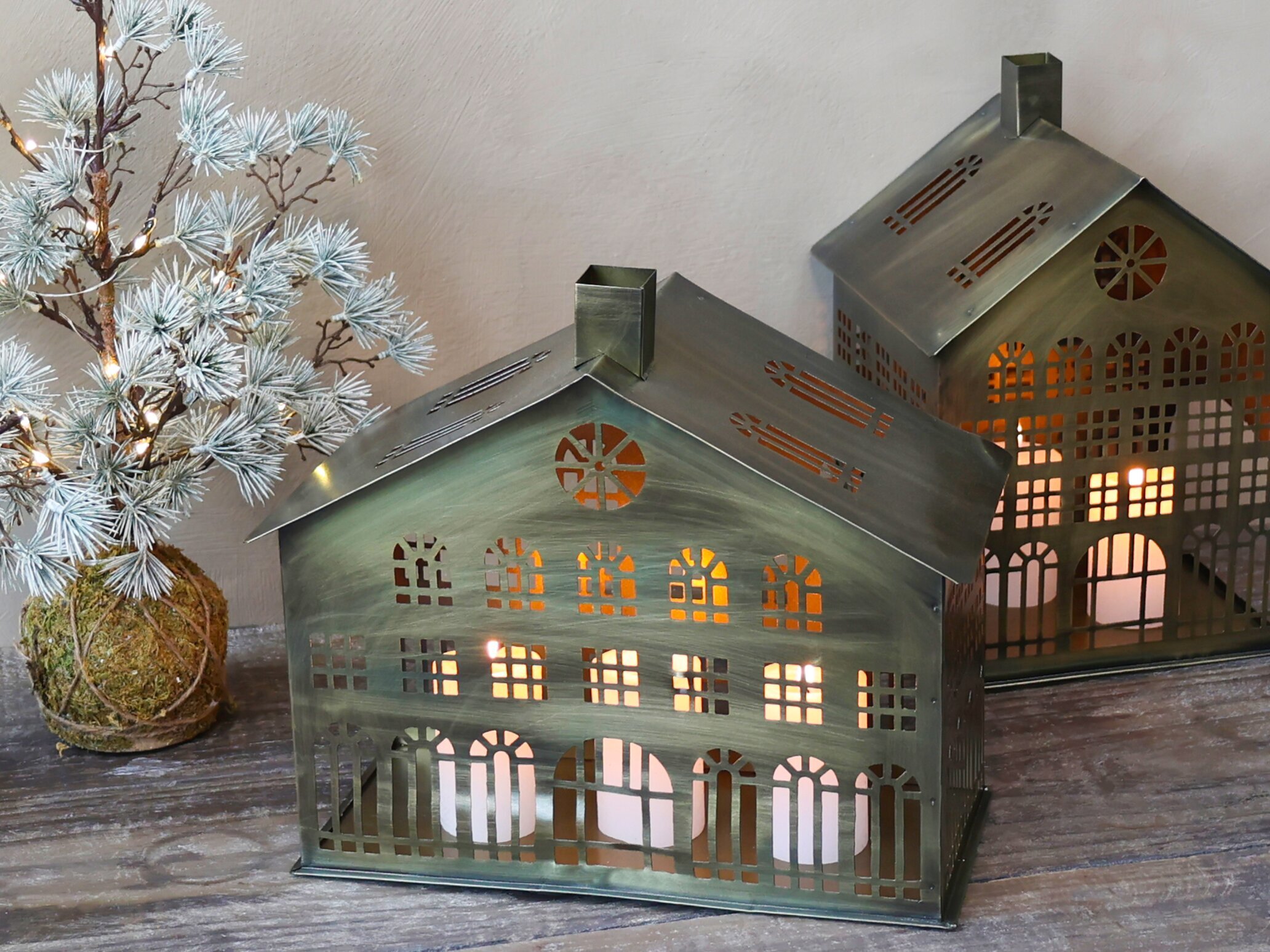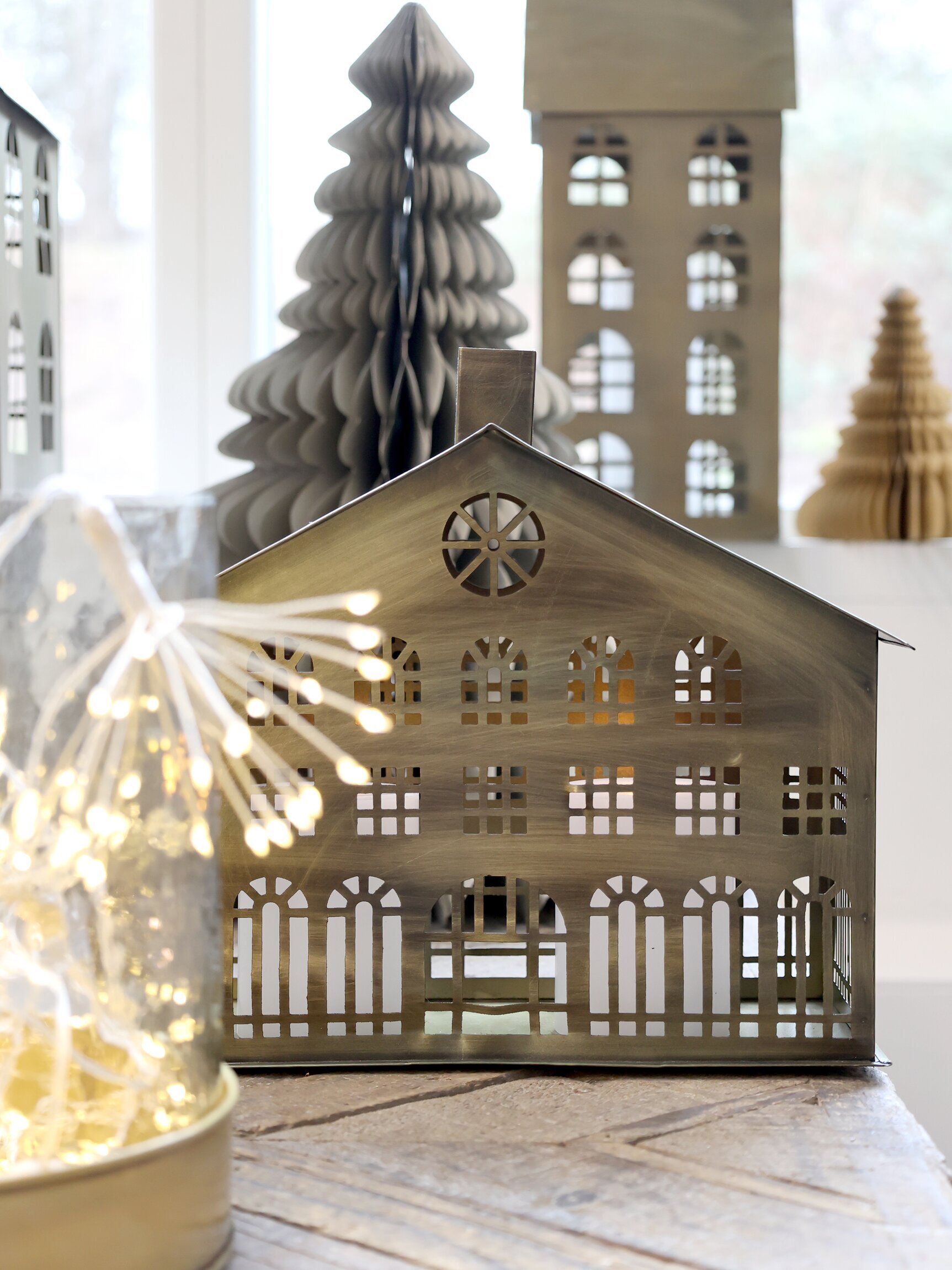 Vacker ljuslykta i metall med plats för värmeljus/blockljus, finns i flera olika utföranden fina att matcha tillsammans.