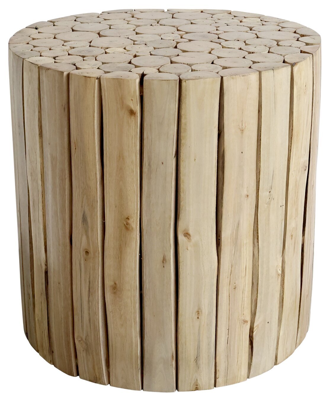 Dekorativ pall som även kan användas som litet sidobord, tillverkat av eukalyptusträd. Från Chic Antique.