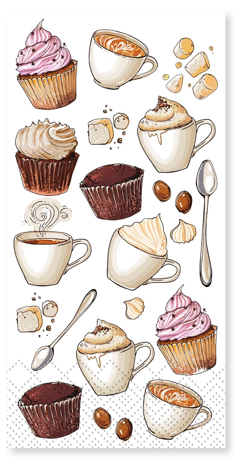 Servetter med motiv av kaffe & bakverk. Från Chic Antique.