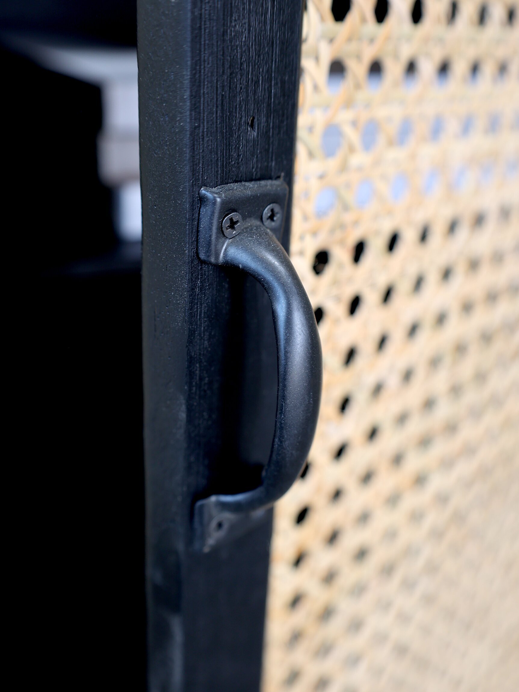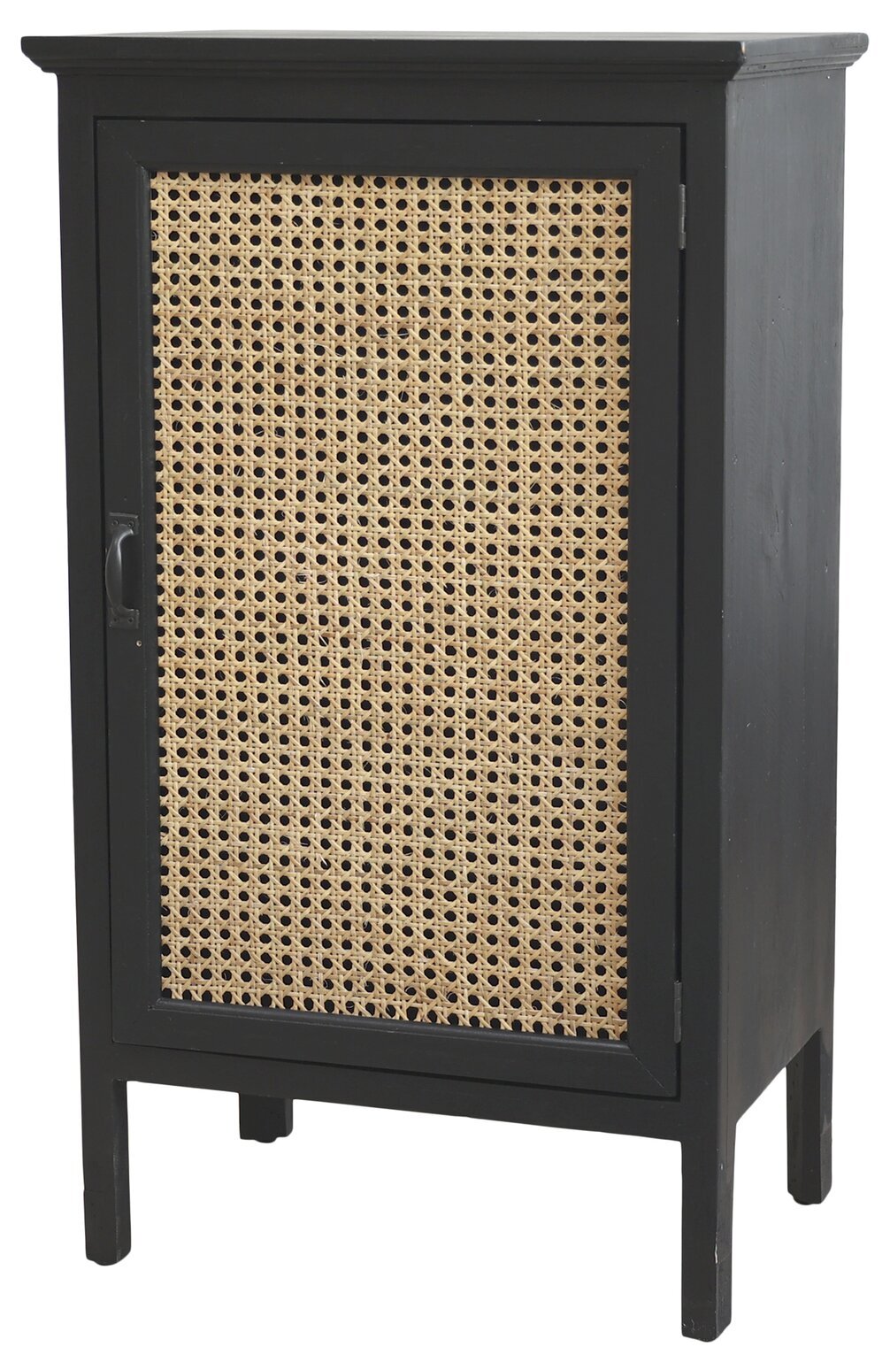 Vackert franskt skåp med flätad rotting, passar fint både som sidobord & högre sängbord.