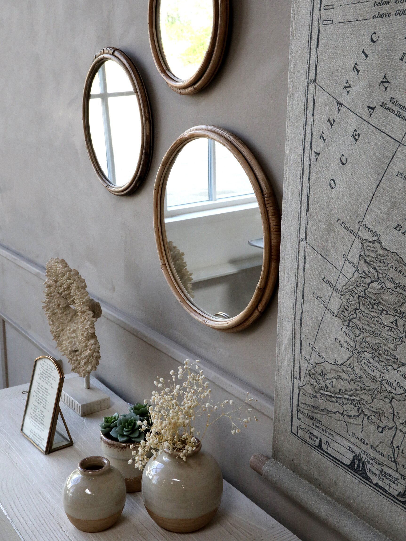 Vacker spegel med ram i bambu, finns i flera olika storlekar fina att matcha tillsammans. Från Chic Antique. Läs mer