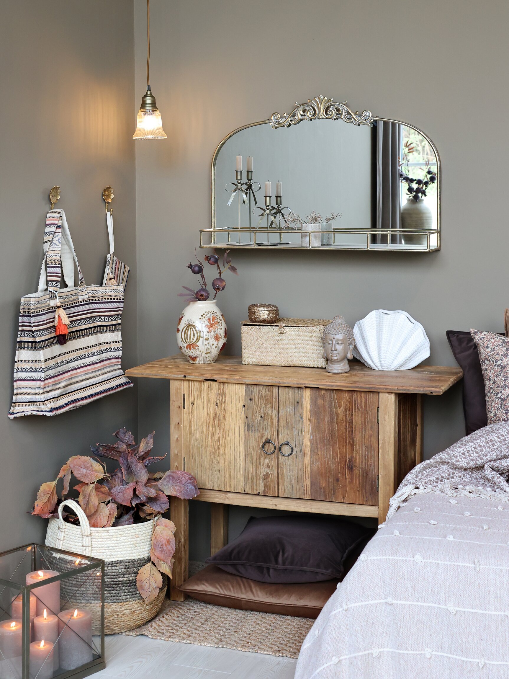 Skapa en varm och personlig känsla i hemmet med denna spegel som både lyfter rummet och ger dig en extra förvaringsyta.
