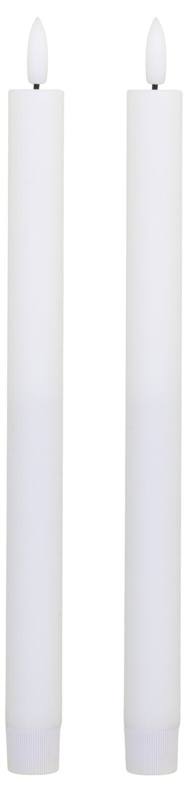 Bilden visar två vita LED-kronljus från varumärket Chic Antique, tillgängliga hos Köpstaden.se, en mångsidig butik som tillhandahåller en bred mängd produkter för olika vardagsbehov. De två ljusen står räta och parallella, vilket skapar ett symmetriskt intryck. Varje ljus mäter 28 centimeter i höjd och framhävs mot en neutral vit bakgrund, vilket gör att produkterna står i centrum av betraktarens uppmärksamhet.