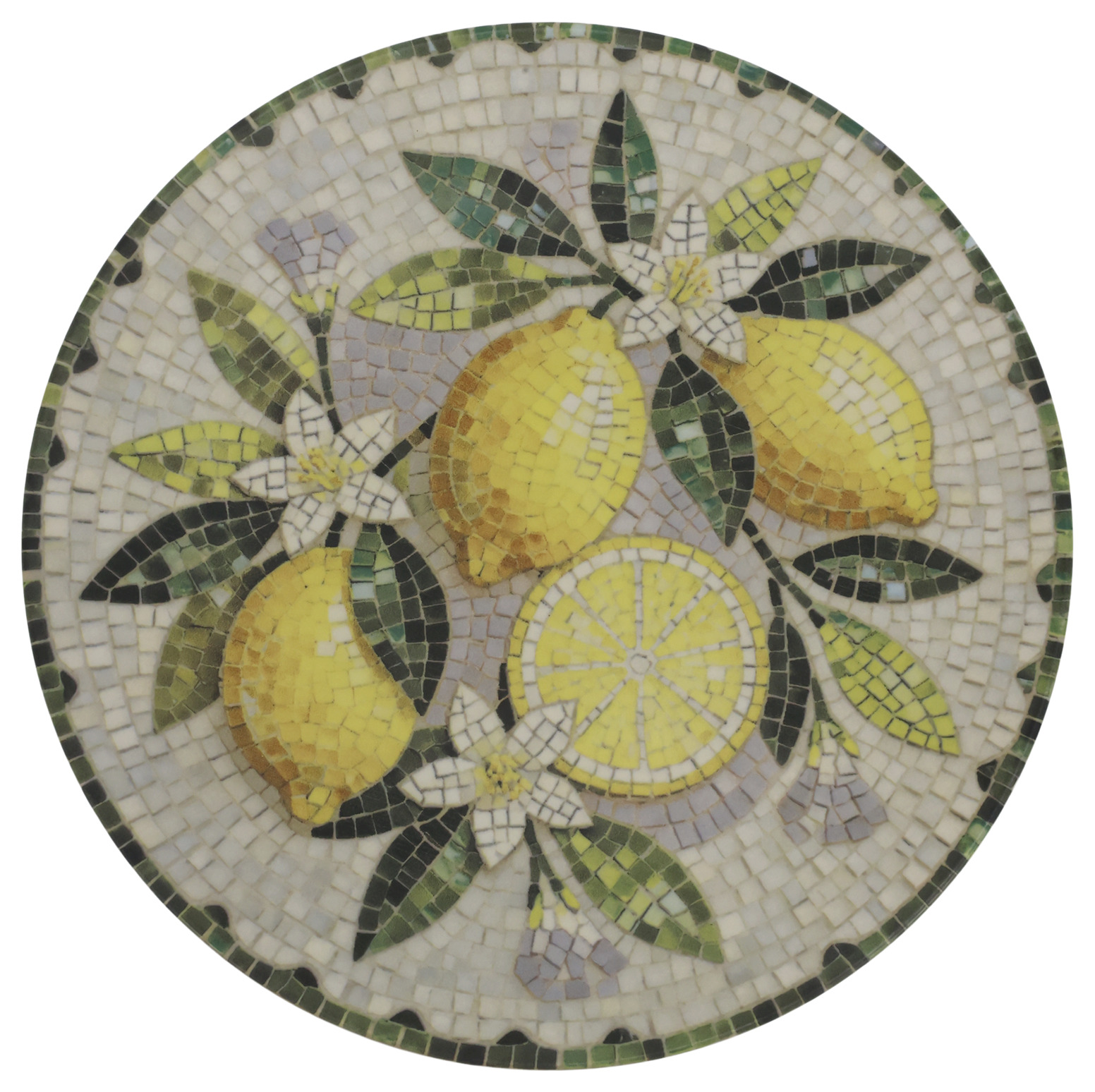 En vacker assiett i stengods med ett dekorativt mosaikmönster som ger en livfull och personlig känsla till dukningen. Den släta ytan gör den både praktisk och behaglig att använda, samtidigt som mönstret skapar ett fint blickfång på bordet.