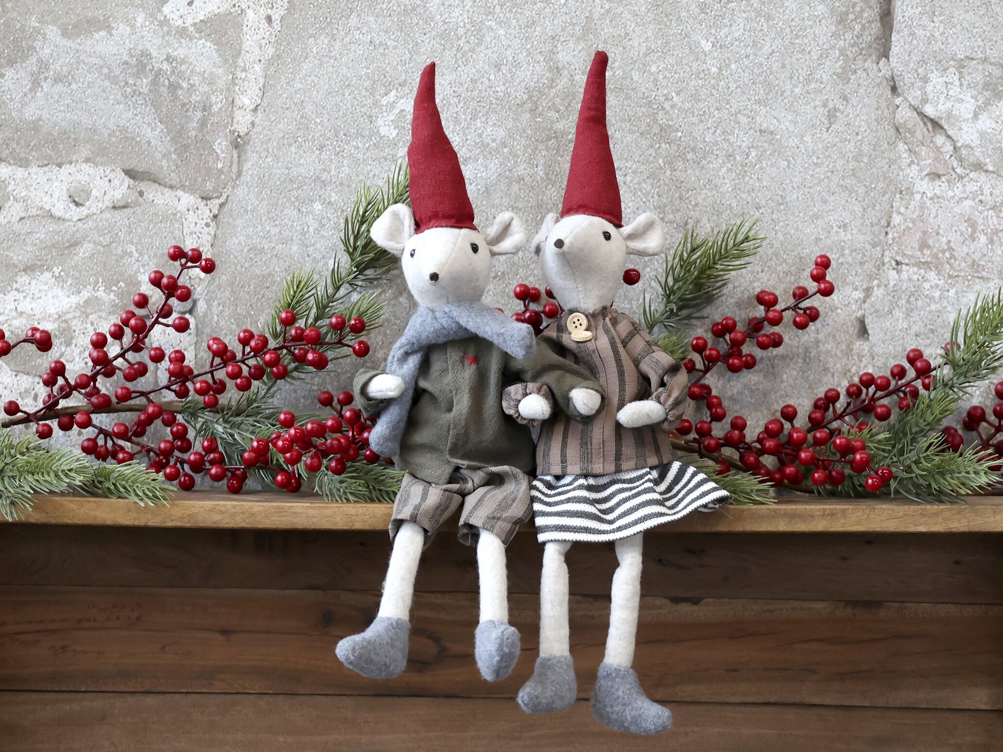 Vackra julmöss i set om 2 stycken, en fin detalj till jul. Från Chic Antique.