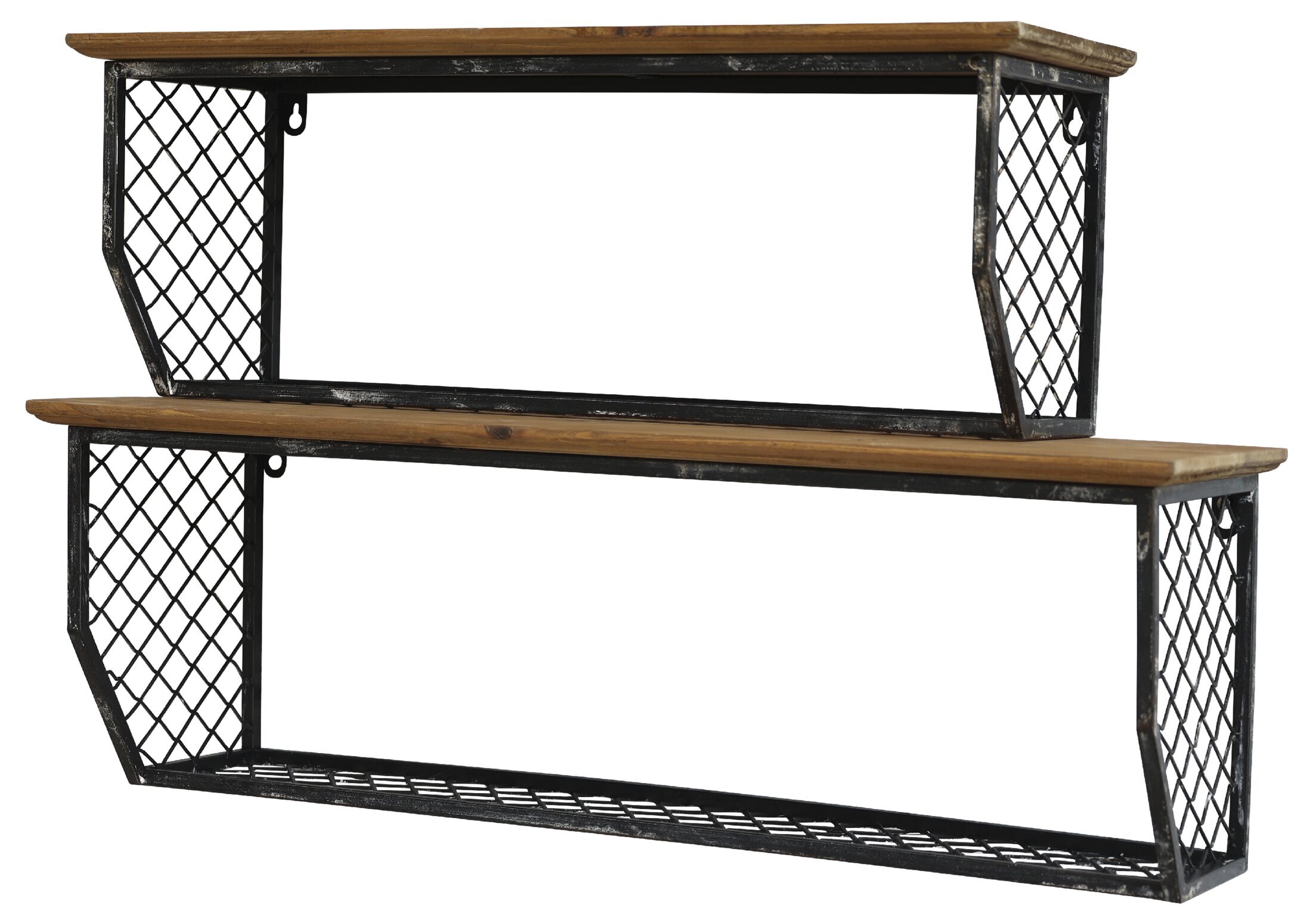 Vägghylla med nätmönster i en fin antiksvart nyans med trähyllor. Hyllorna har med sitt antika utseende en. Läs mer