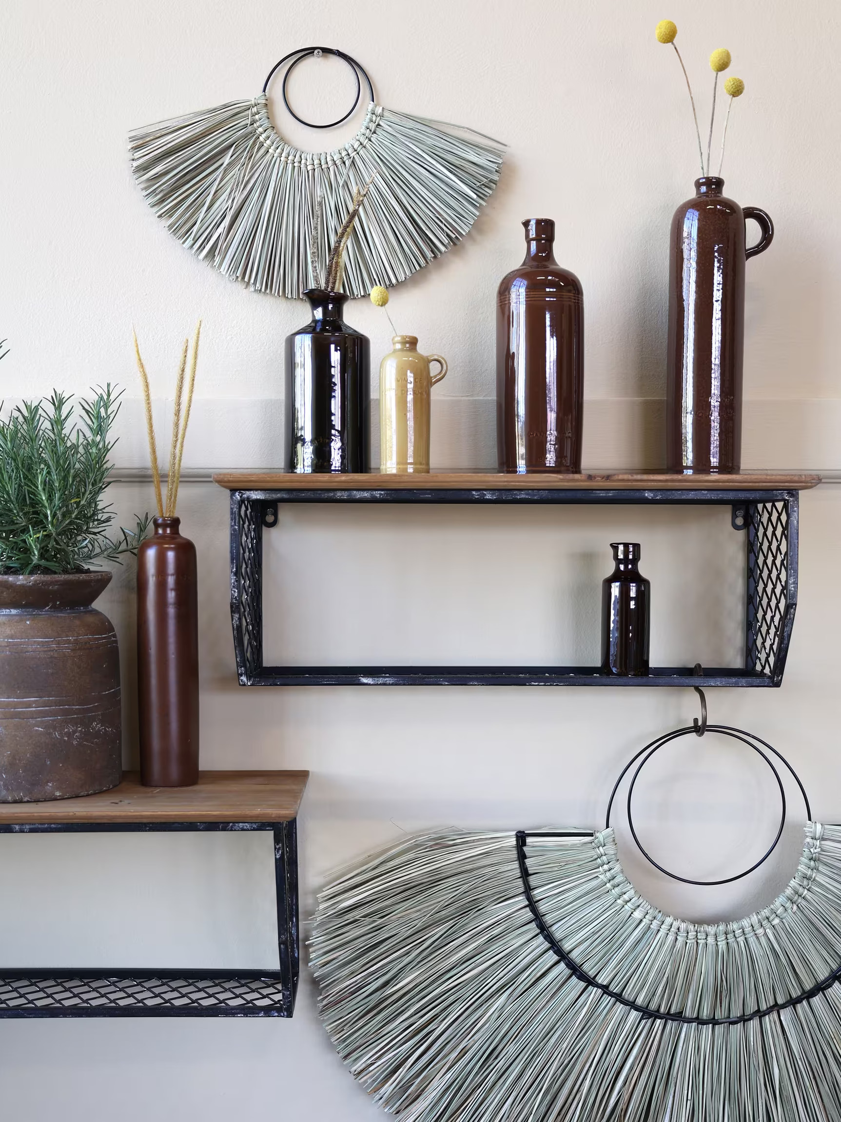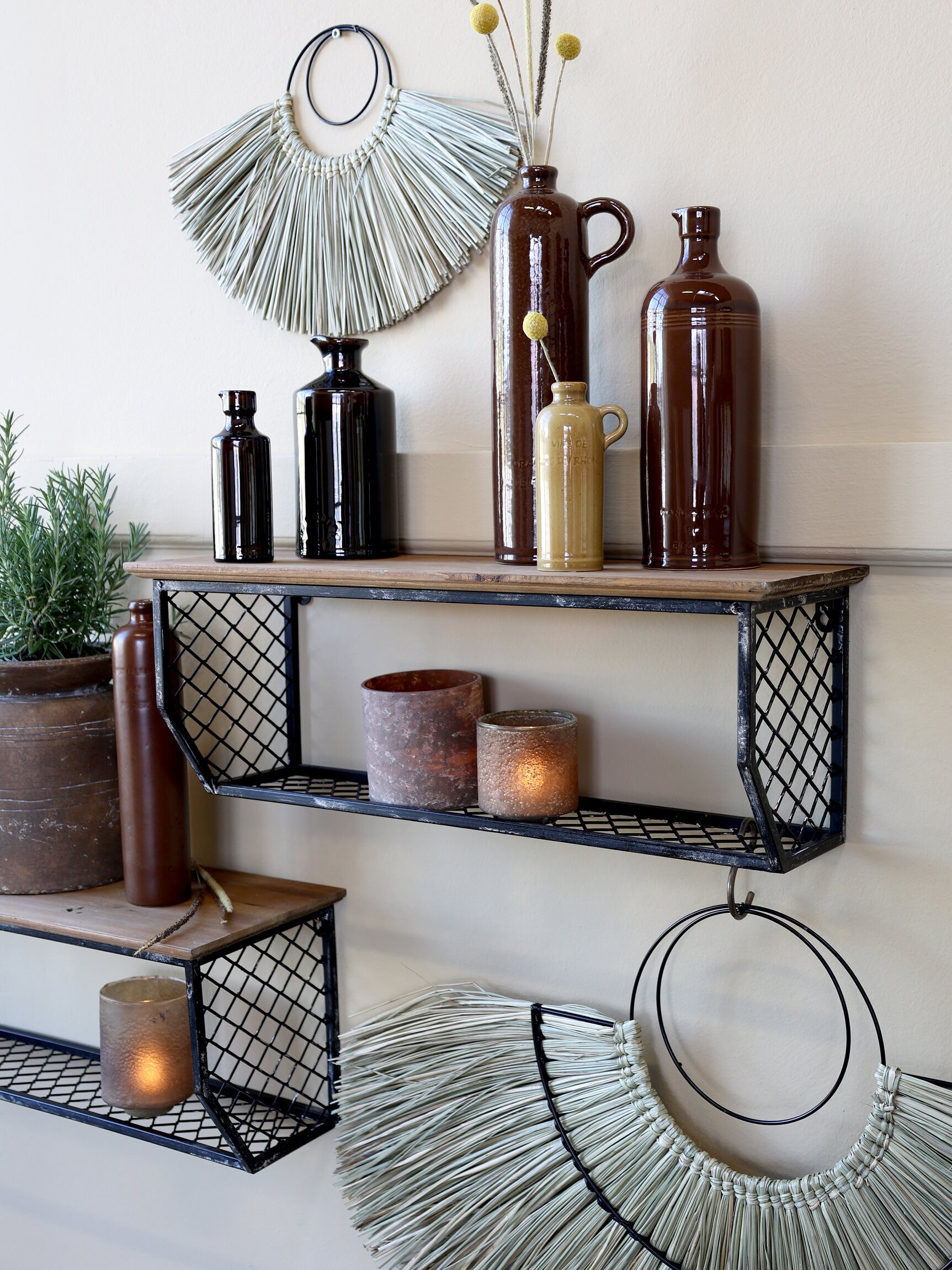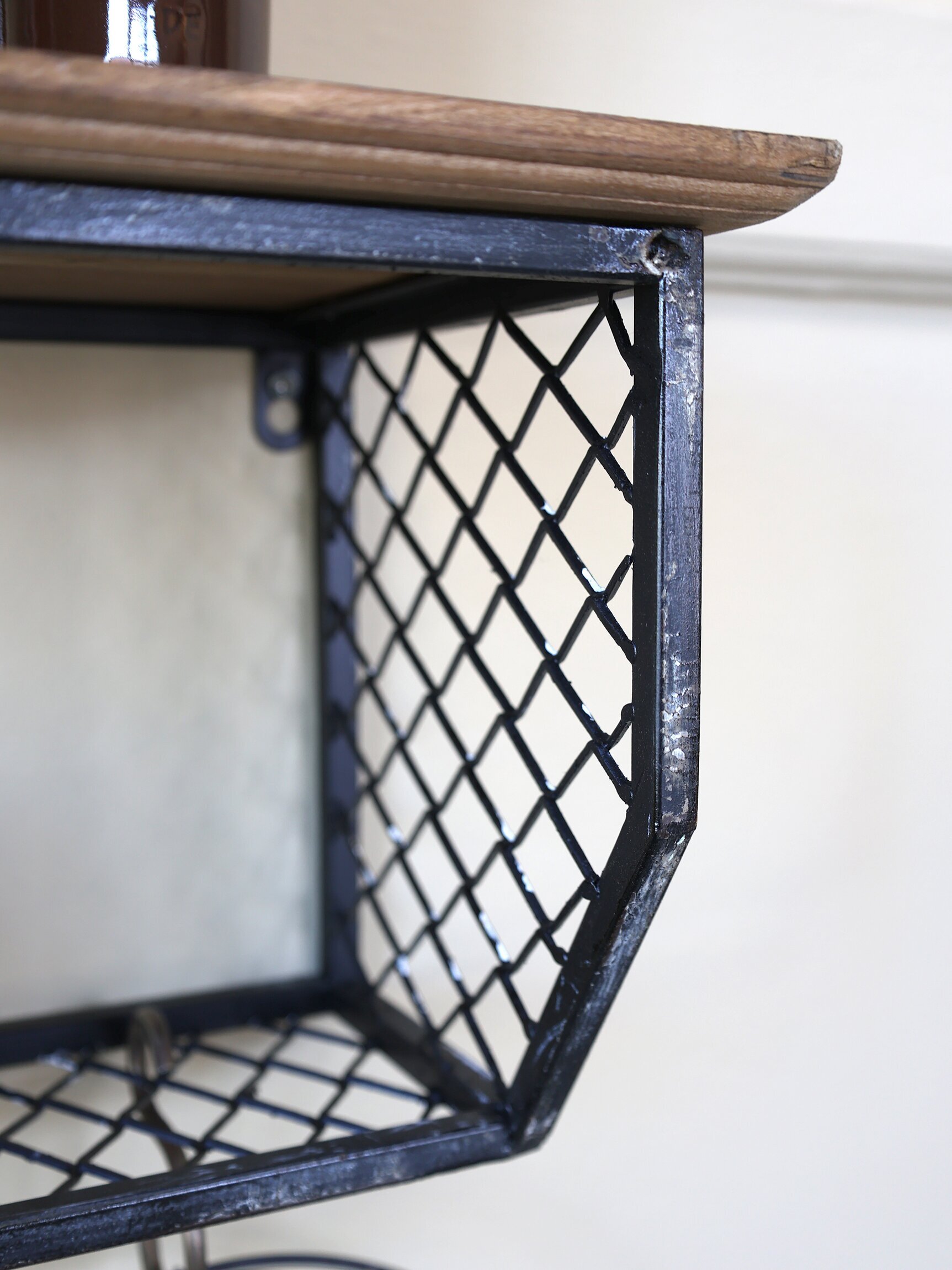 Vägghylla med nätmönster i en fin antiksvart nyans. Hyllorna har med sitt antika utseende en lite sliten design & passar fint både i kök som vardagsrum.